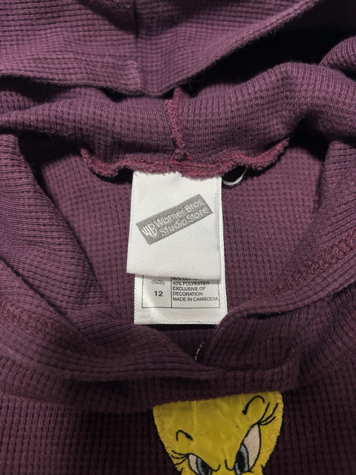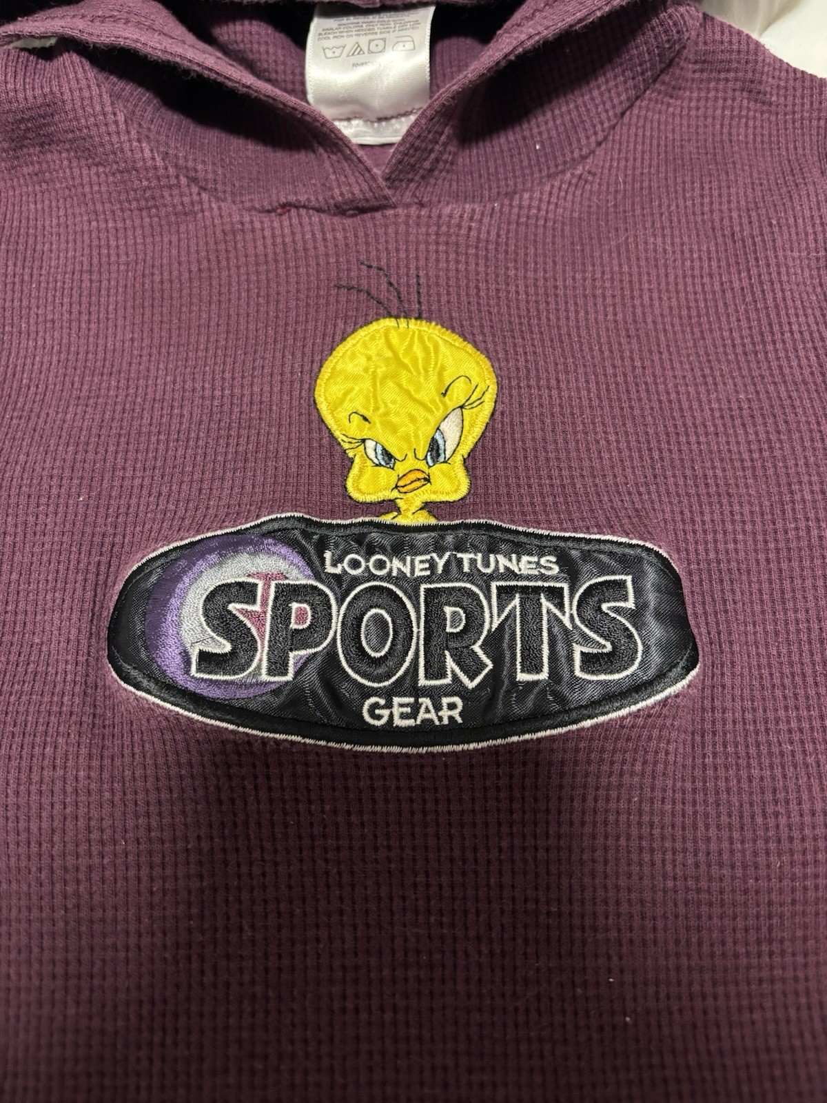 Vintage 1999 Looney Tunes Sports Gear Thermal Pullover Hoodie Size 12 Tweety WB