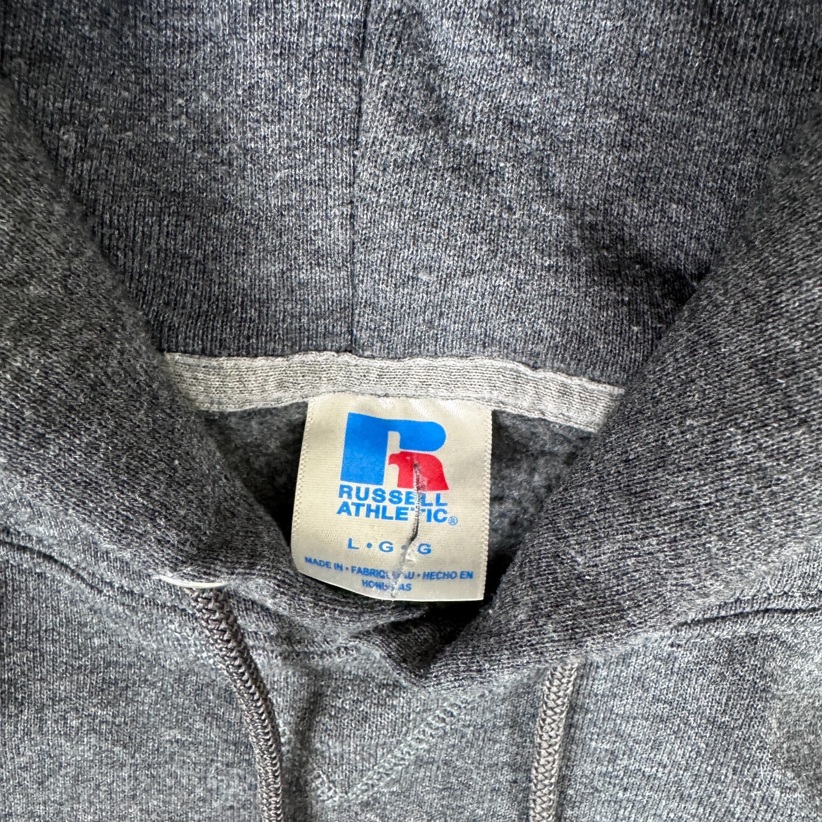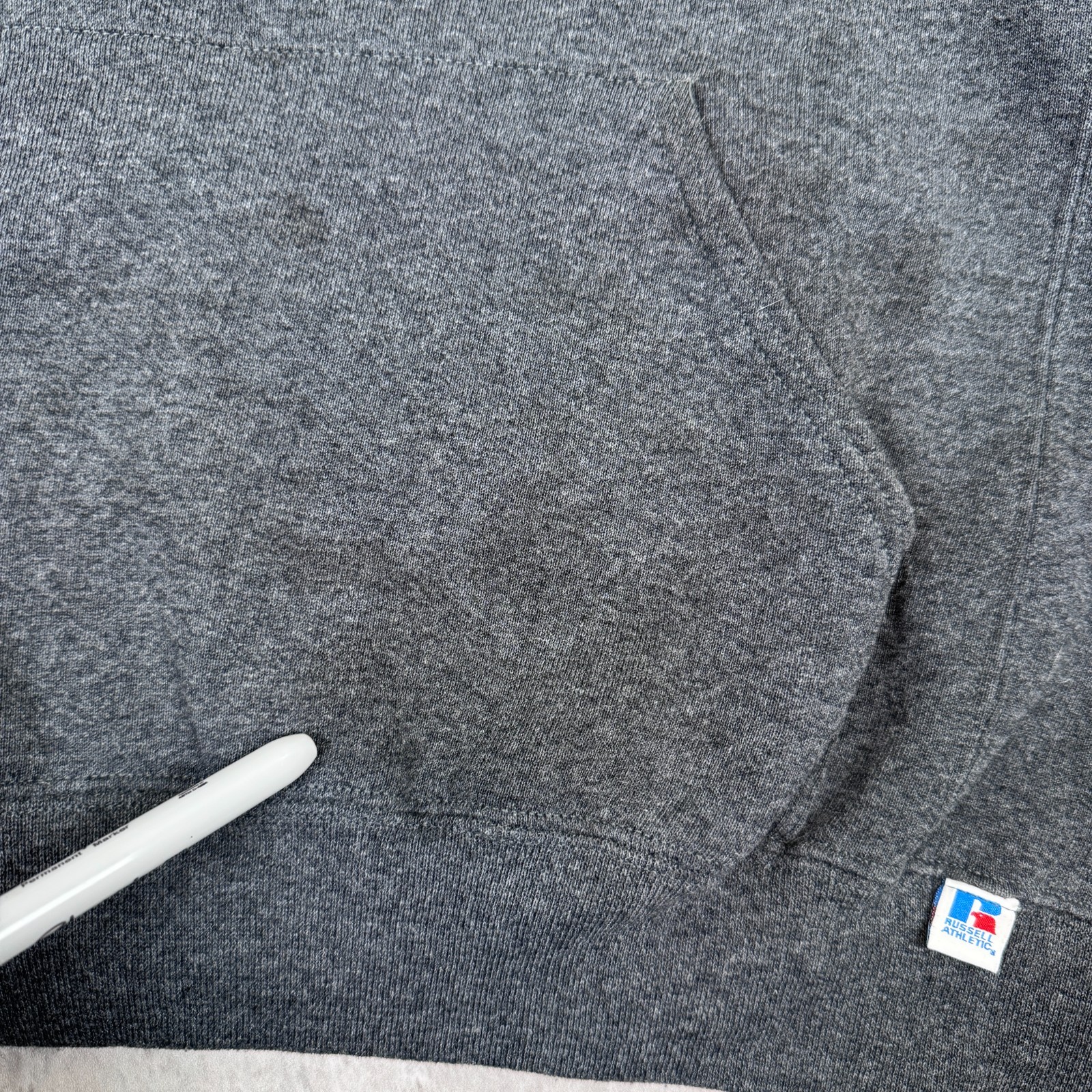 Vintage Russell Athletic Blank Hoodie Mens Large Gray Distressed Fade Sweatshirt