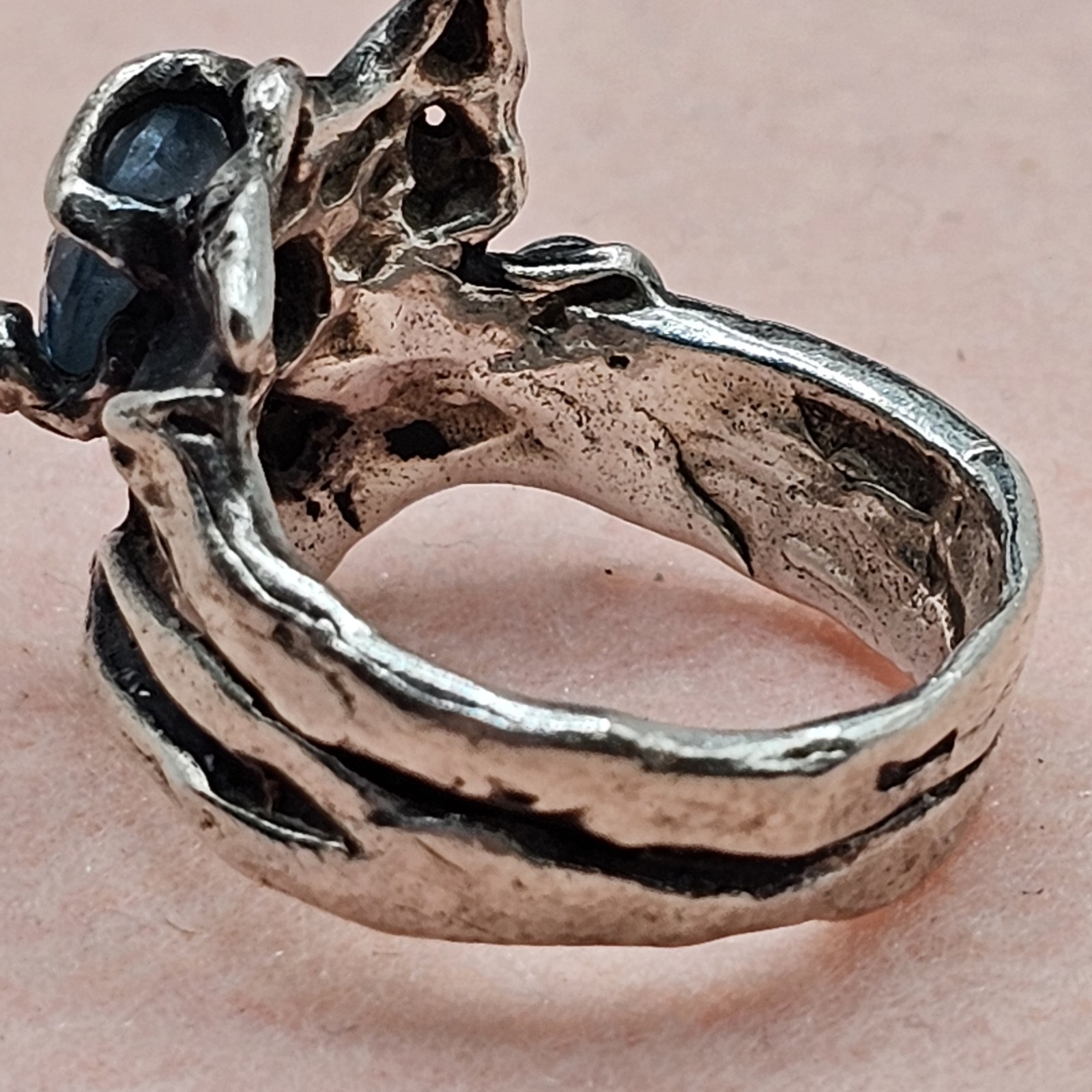 Sterling Silver Blue Topaz Ring 10g elegant statement Handmade Size 5.25
