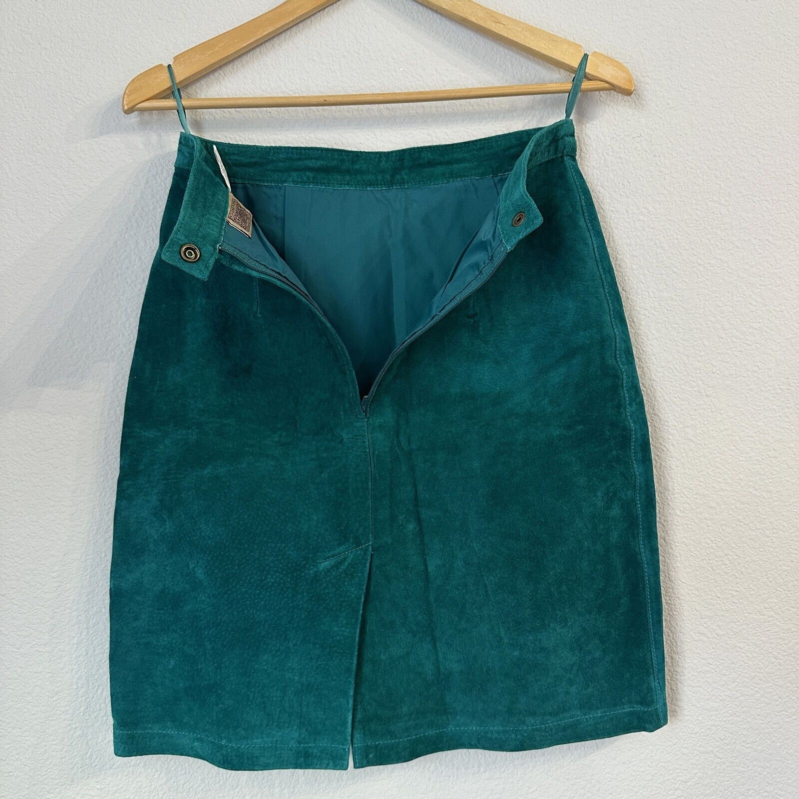 VTG International Leather Collection Skirt Suede 80s/90s Green 100 Leather 7/8