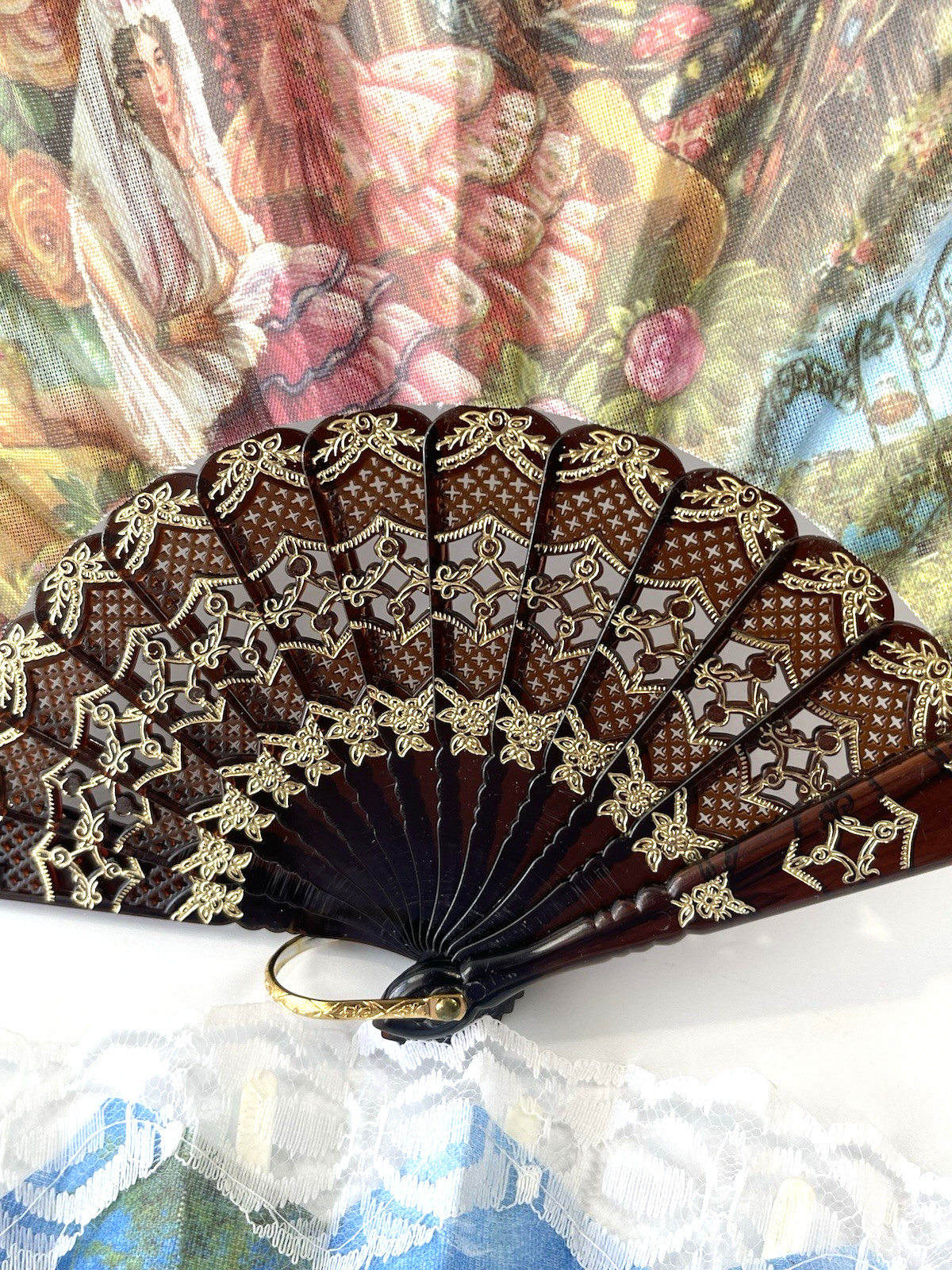 как выглядит Vintage Spanish Folding Hand Fans Black White Lace Sevilla Souvenir Set of 2 фото