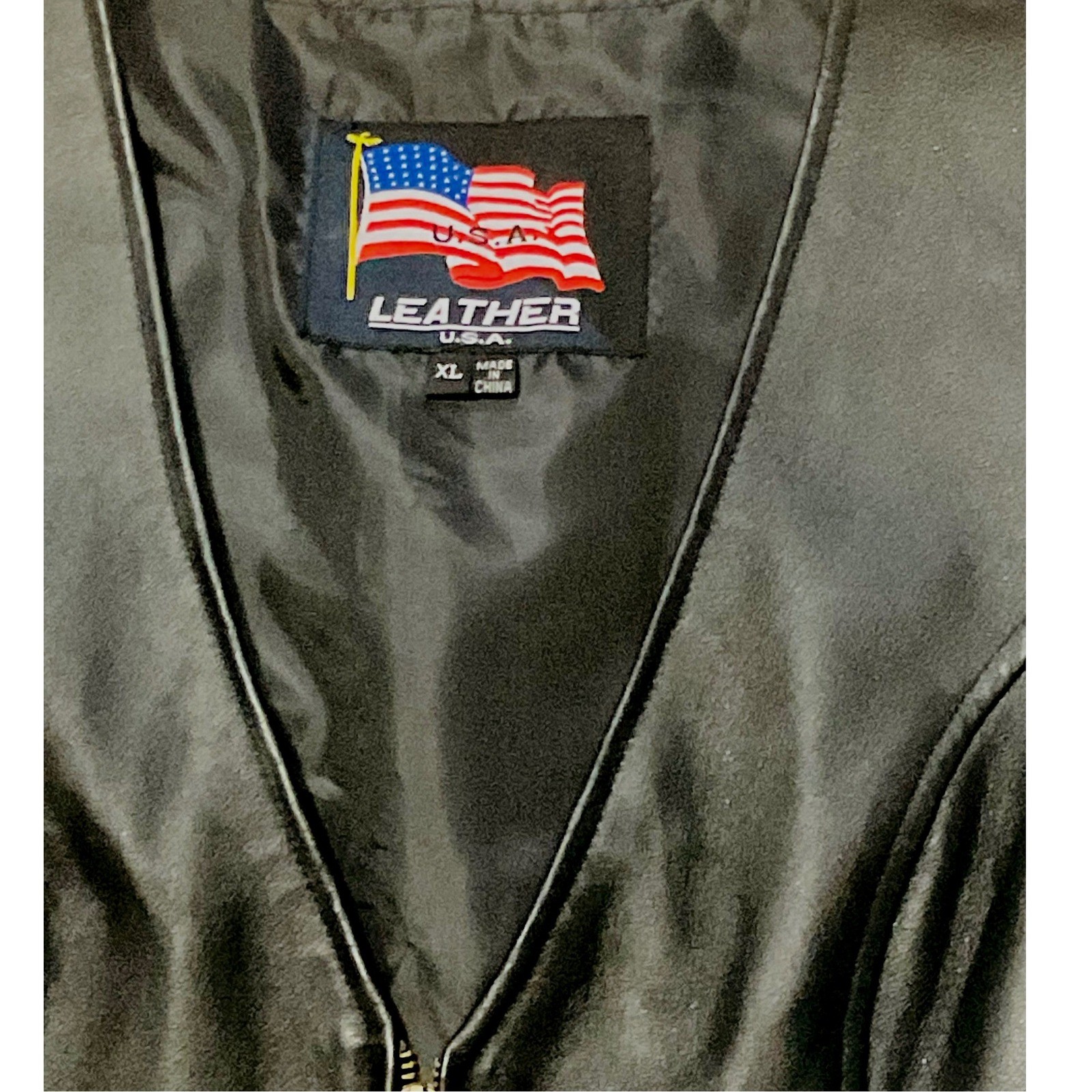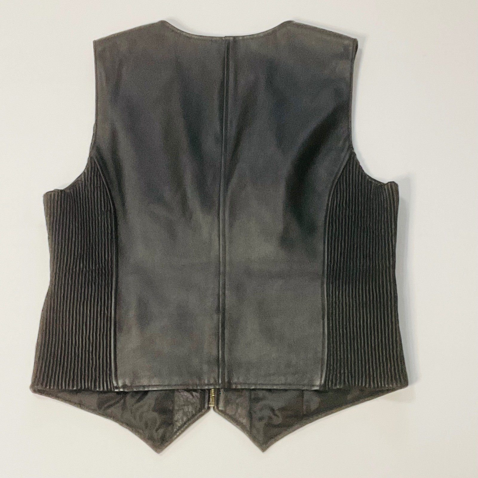 как выглядит U.S.A.mens genuine leather biker motorcycle vest black pockets Stretch MOTO XL фото
