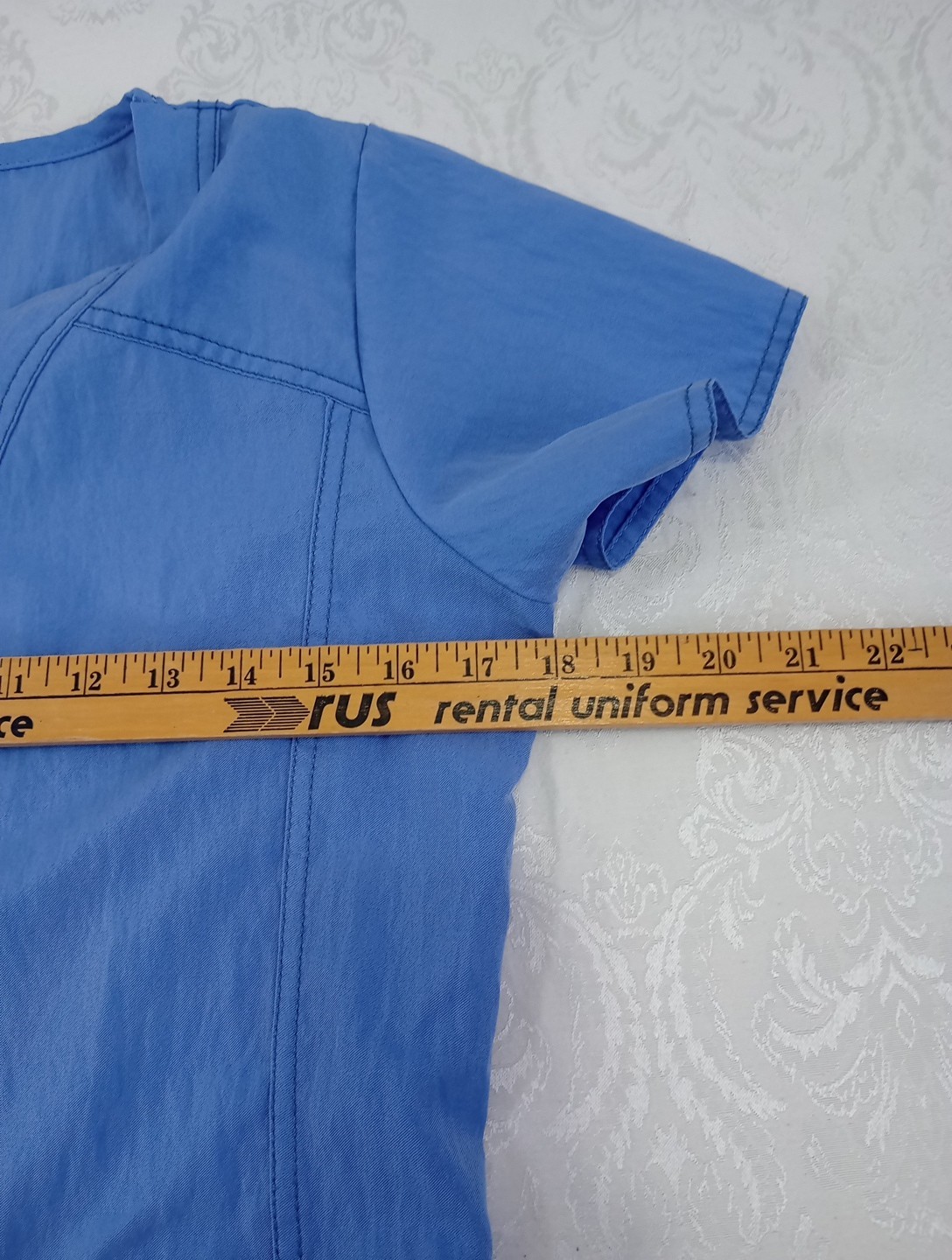 как выглядит Wonder Wink Scrub Top Womens Size XS Light Blue Short Sleeve V-Neck Pullover фото