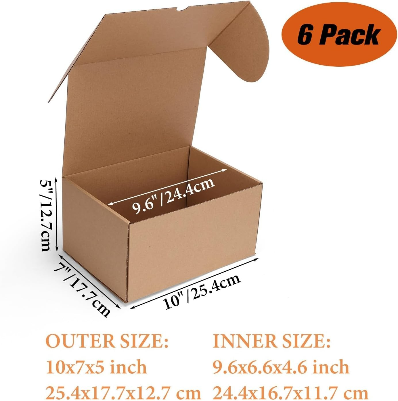 10x7x5 inch Shipping Boxes 6 Pack Brown, Tab Lock Tuck Top Mailer Boxes for P...