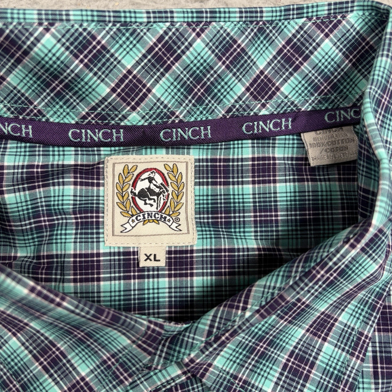 как выглядит Cinch Shirt Men XL Green Purple Plaid Cotton Long Sleeve Button Up Western фото