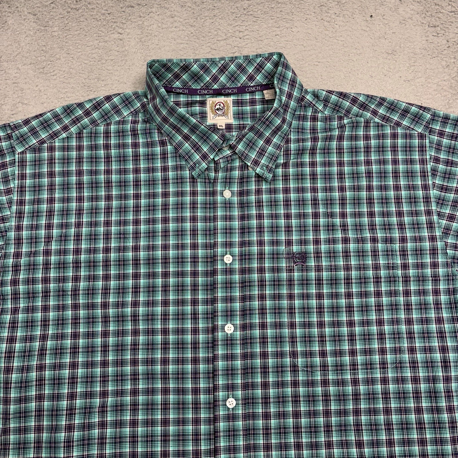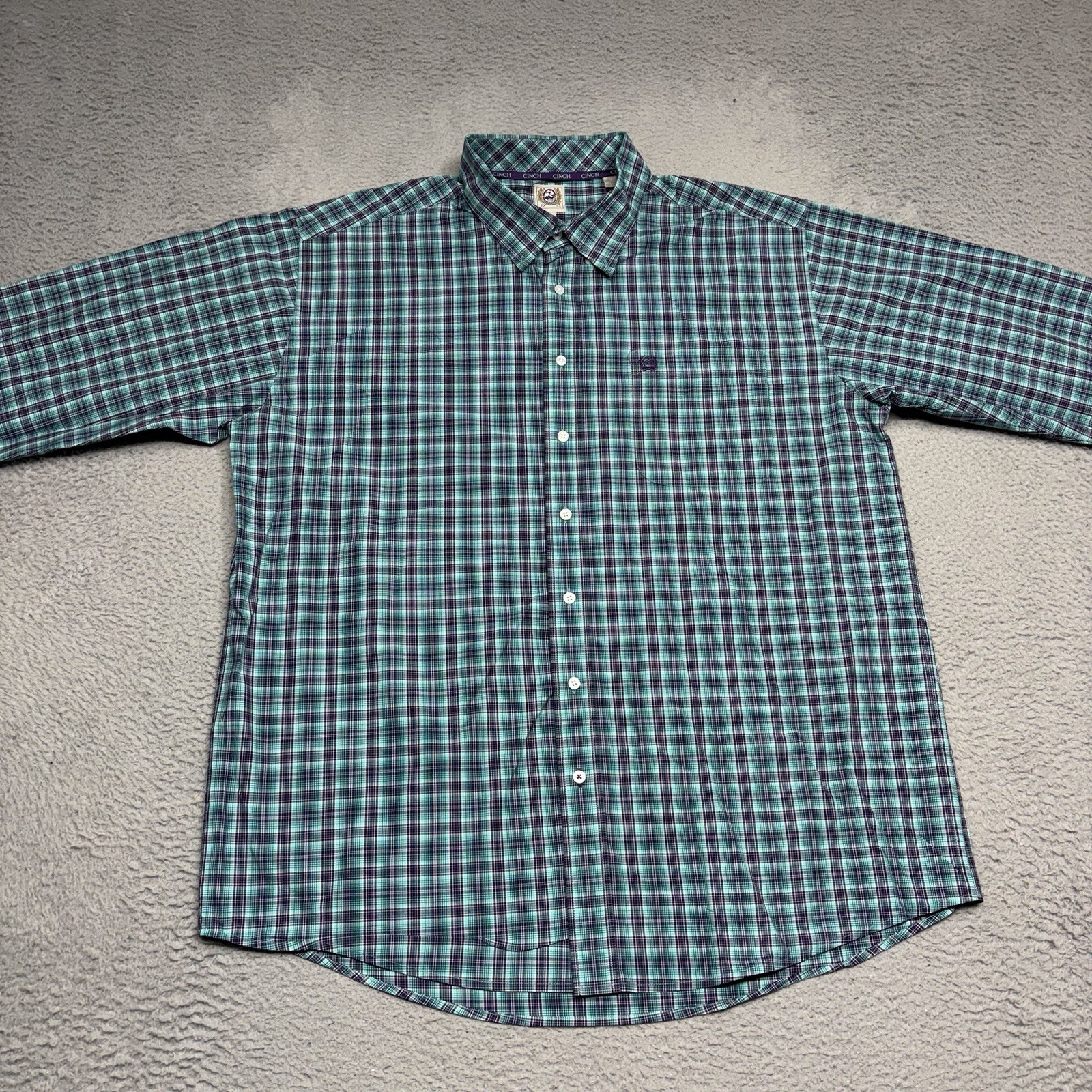Cinch Shirt Men XL Green Purple Plaid Cotton Long Sleeve Button Up Western