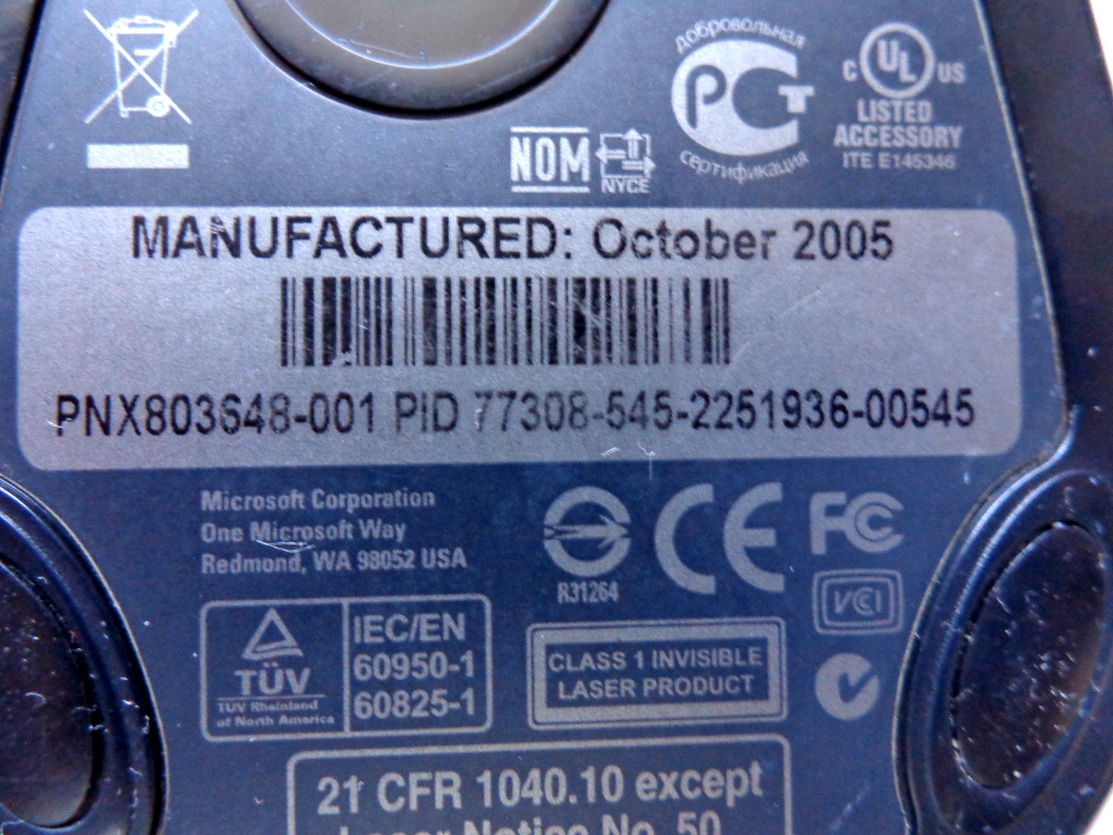 Microsoft Laser Mouse 6000 PID: 77308-545-2251936-00545