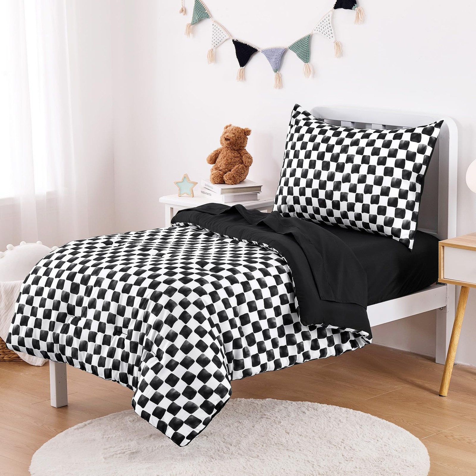 - Bedding Set for Boys Girls, Cute Gingham Grid Checkered, 4 Pieces Soft Crib...