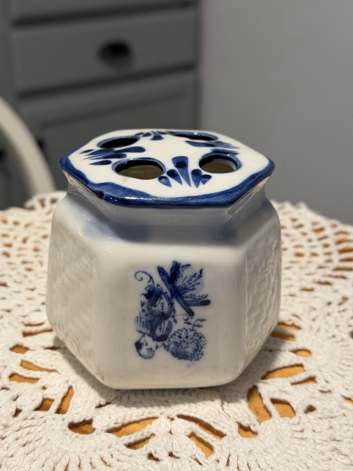 как выглядит Blue White Roses Floral Toothbrush Holder Hand Painted Elegant Mann/Japan фото