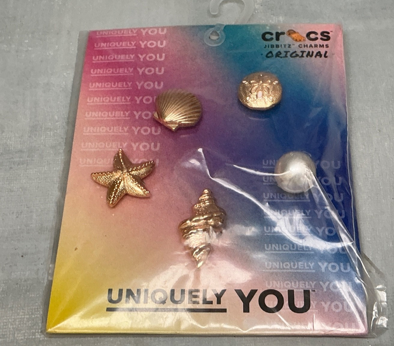 как выглядит Crocs Jibbitz Uniquely You Gold Shoe Charms On Holiday At The Sea 5 Pack фото