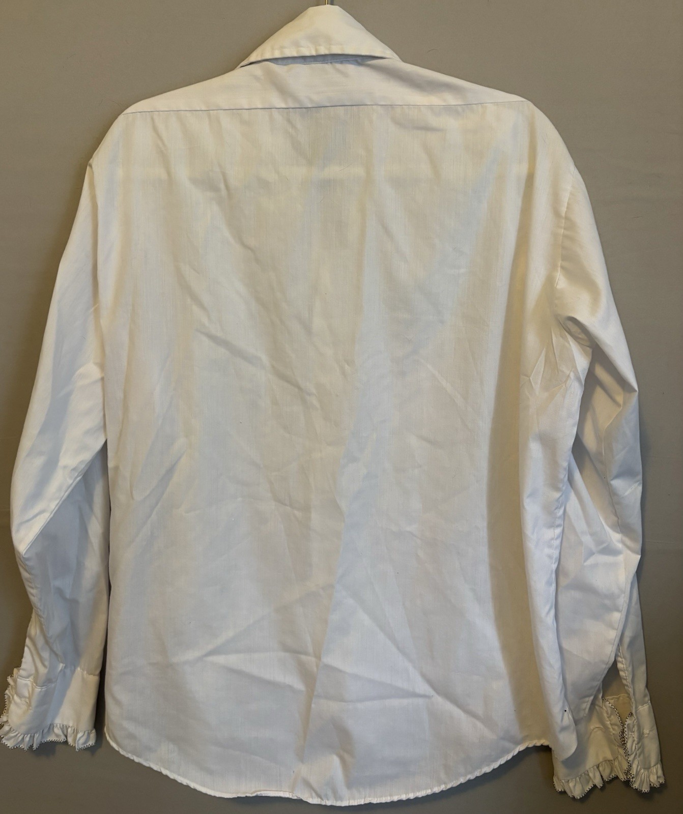 Vintage 70s White Ruffled Tuxedo Shirt I.S.C.A Shriner Patch Lion of Troy 16 34