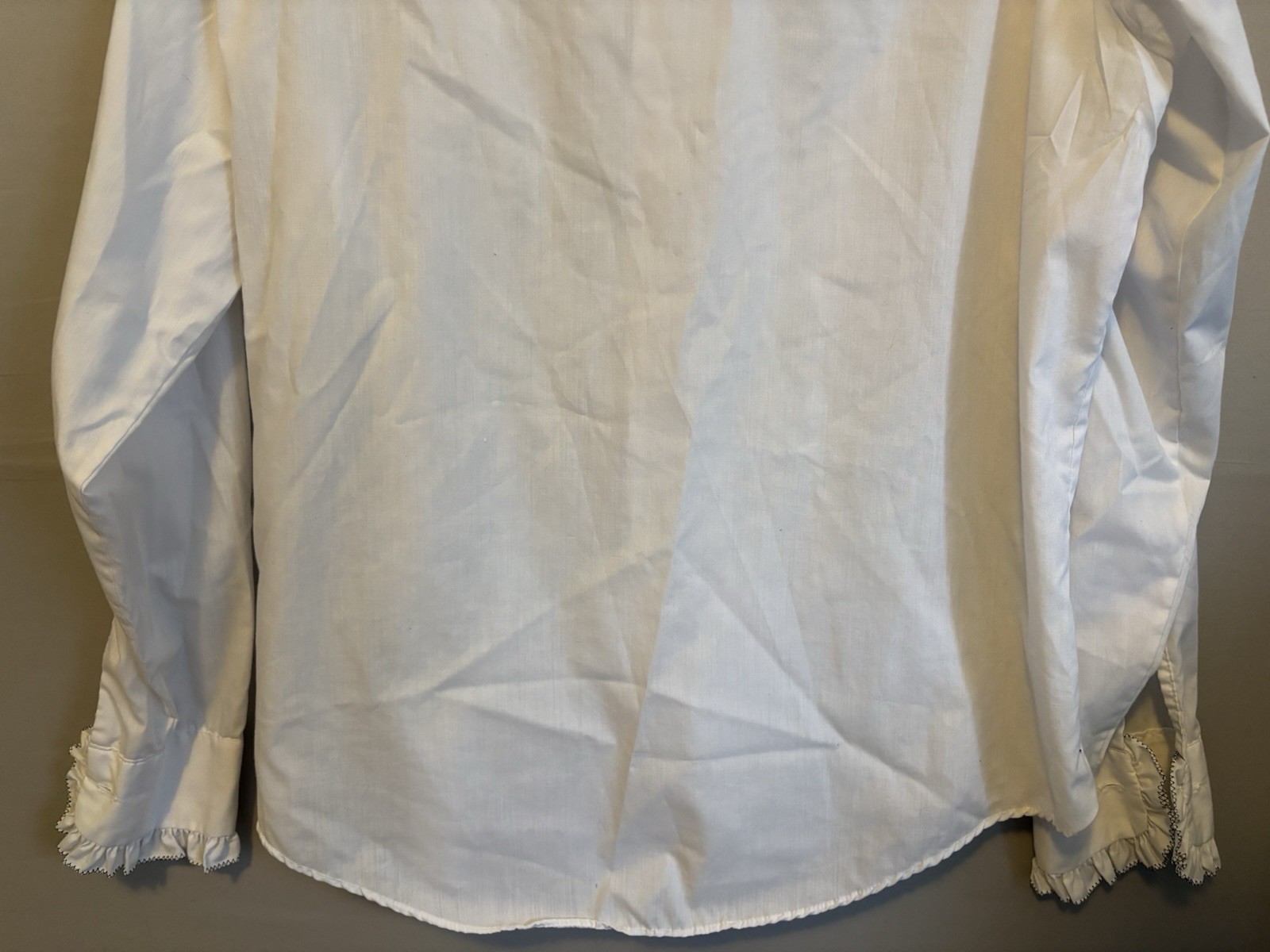 как выглядит Vintage 70s White Ruffled Tuxedo Shirt I.S.C.A Shriner Patch Lion of Troy 16 34 фото