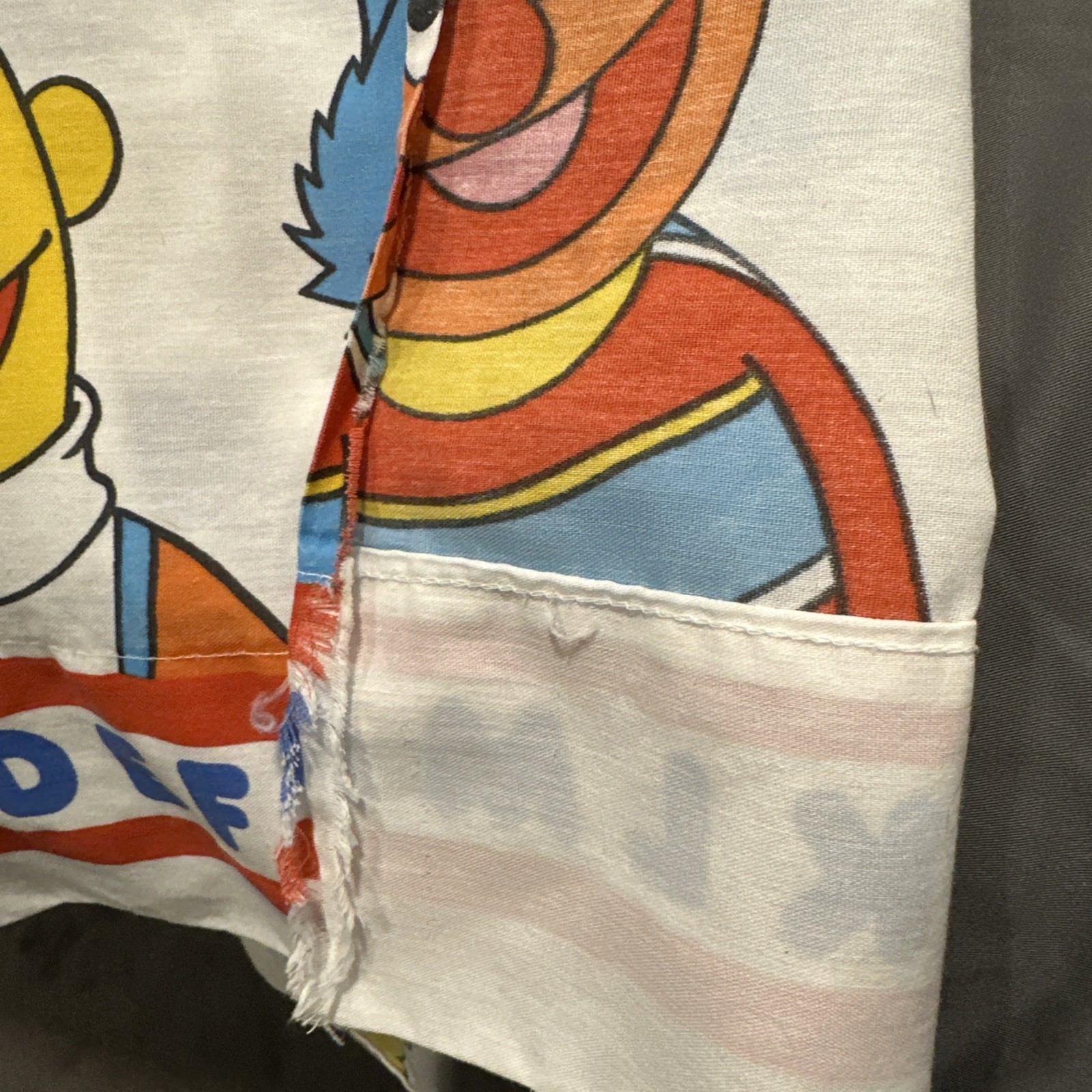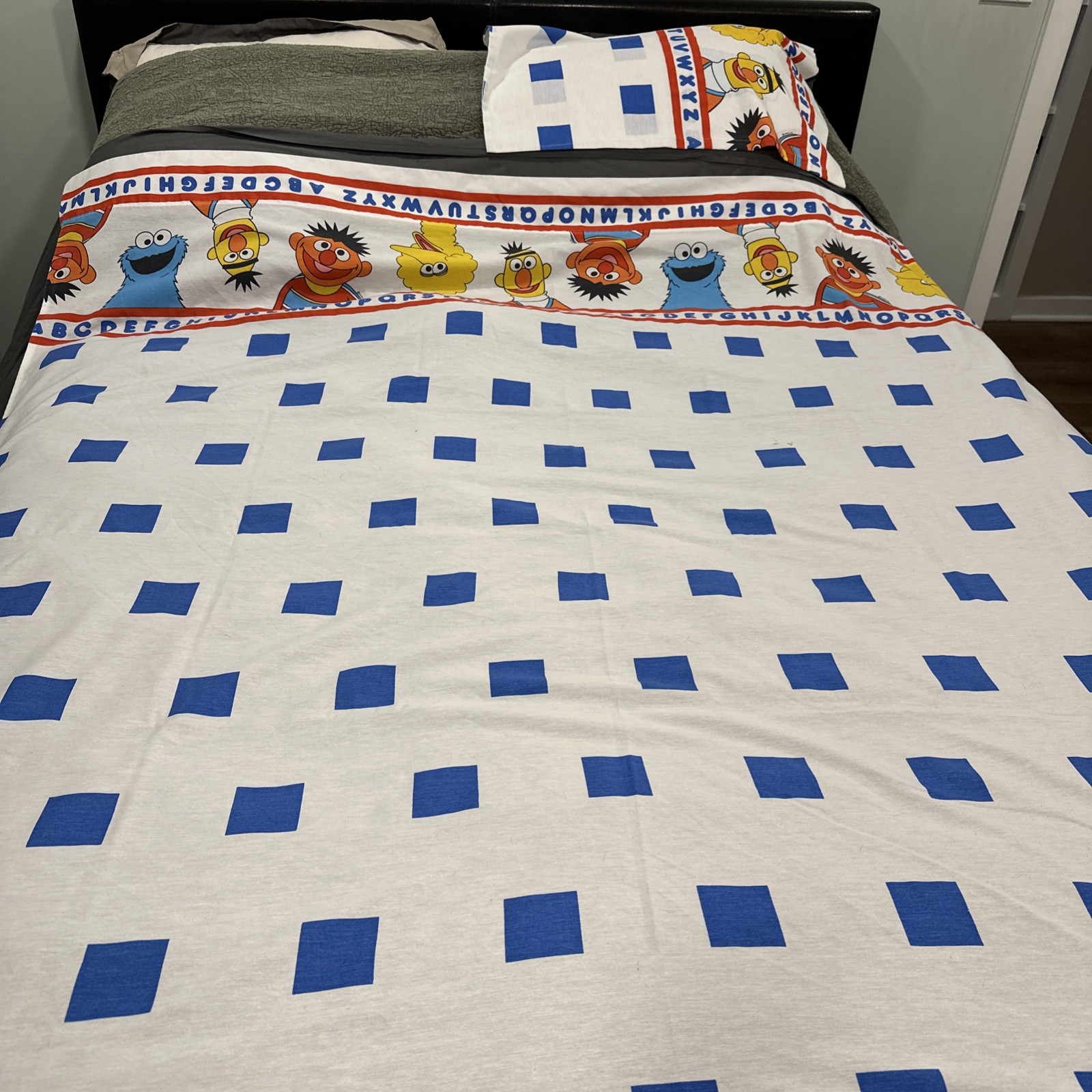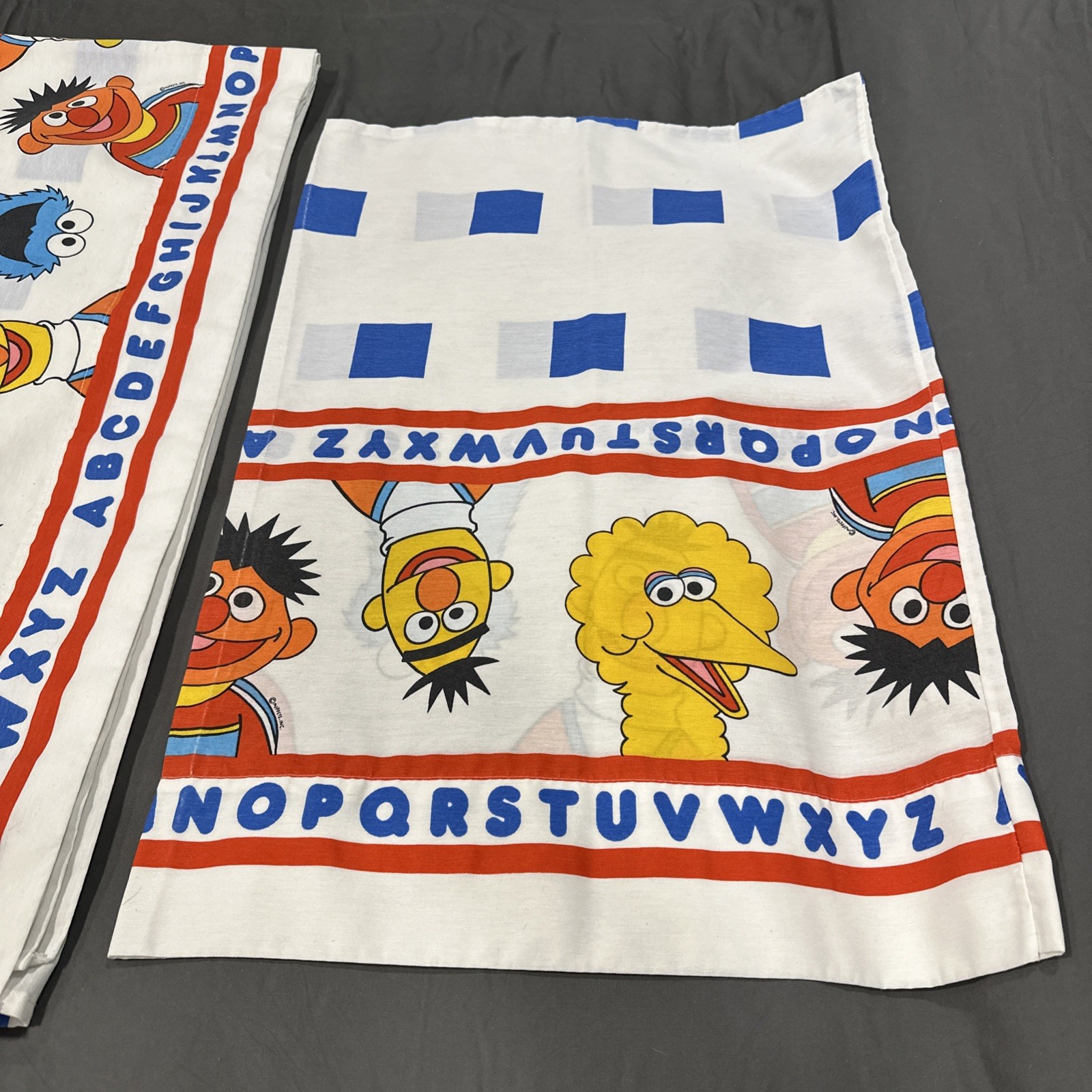 Vintage Sesame Street Flat Bed Sheet Twin Pillow Case Ernie Bert Up Cycle Fabric