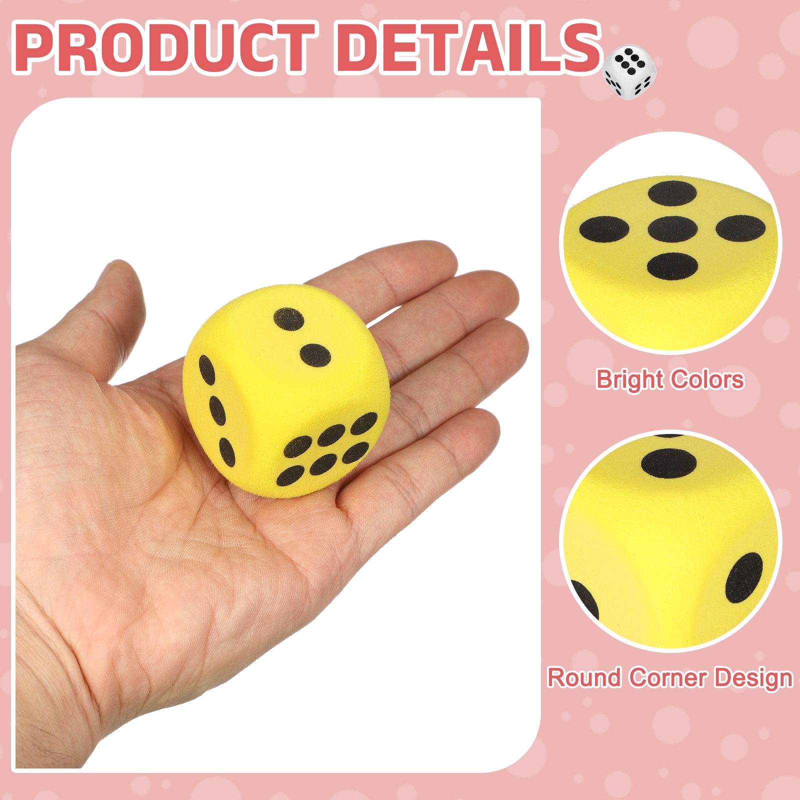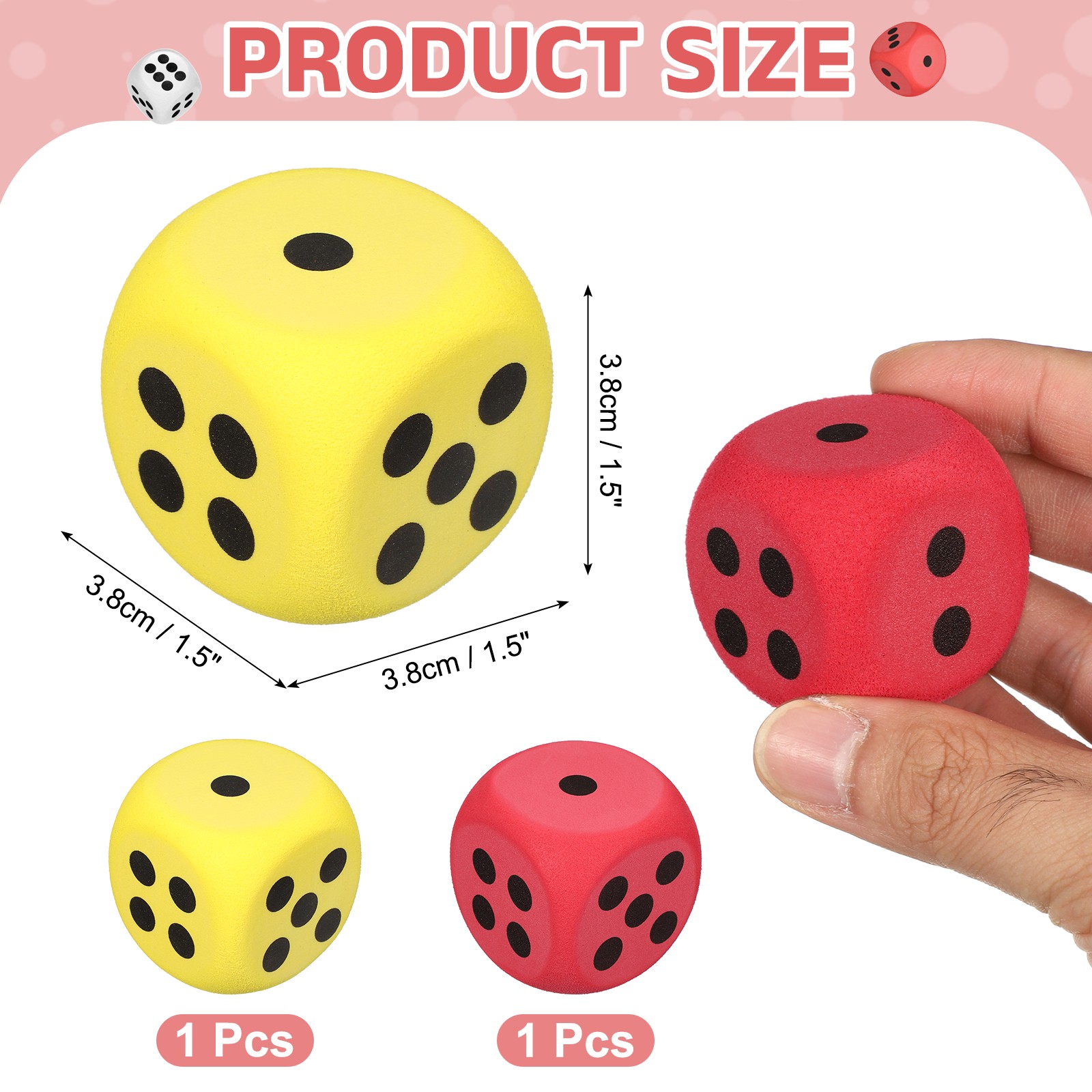 2Pcs Foam Dice, 3.8cm/1.5inch Six-Sided Dice Stress Ball Red, Yellow