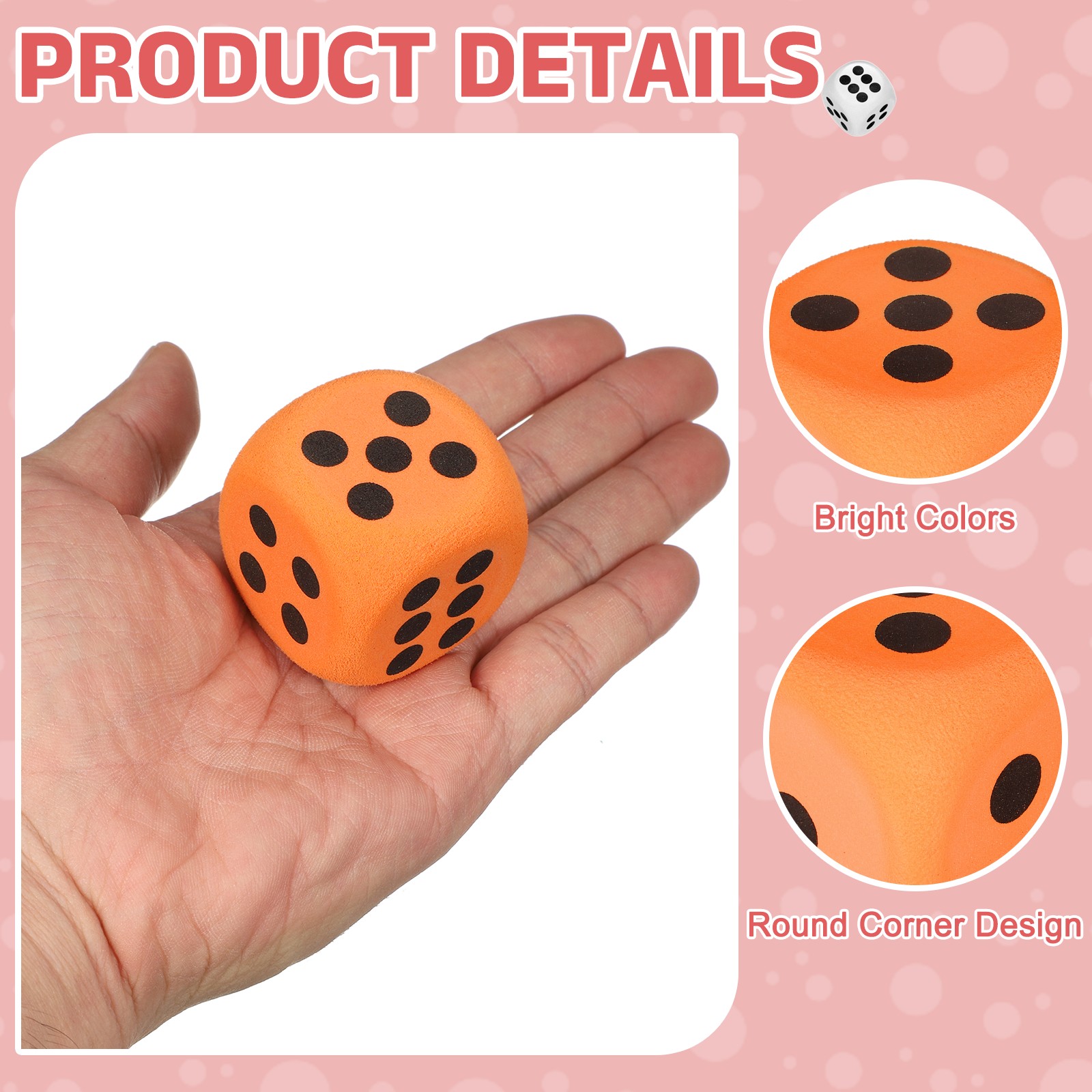 2Pcs Foam Dice, 3.8cm/1.5inch Six-Sided Dice Stress Ball Red, Orange