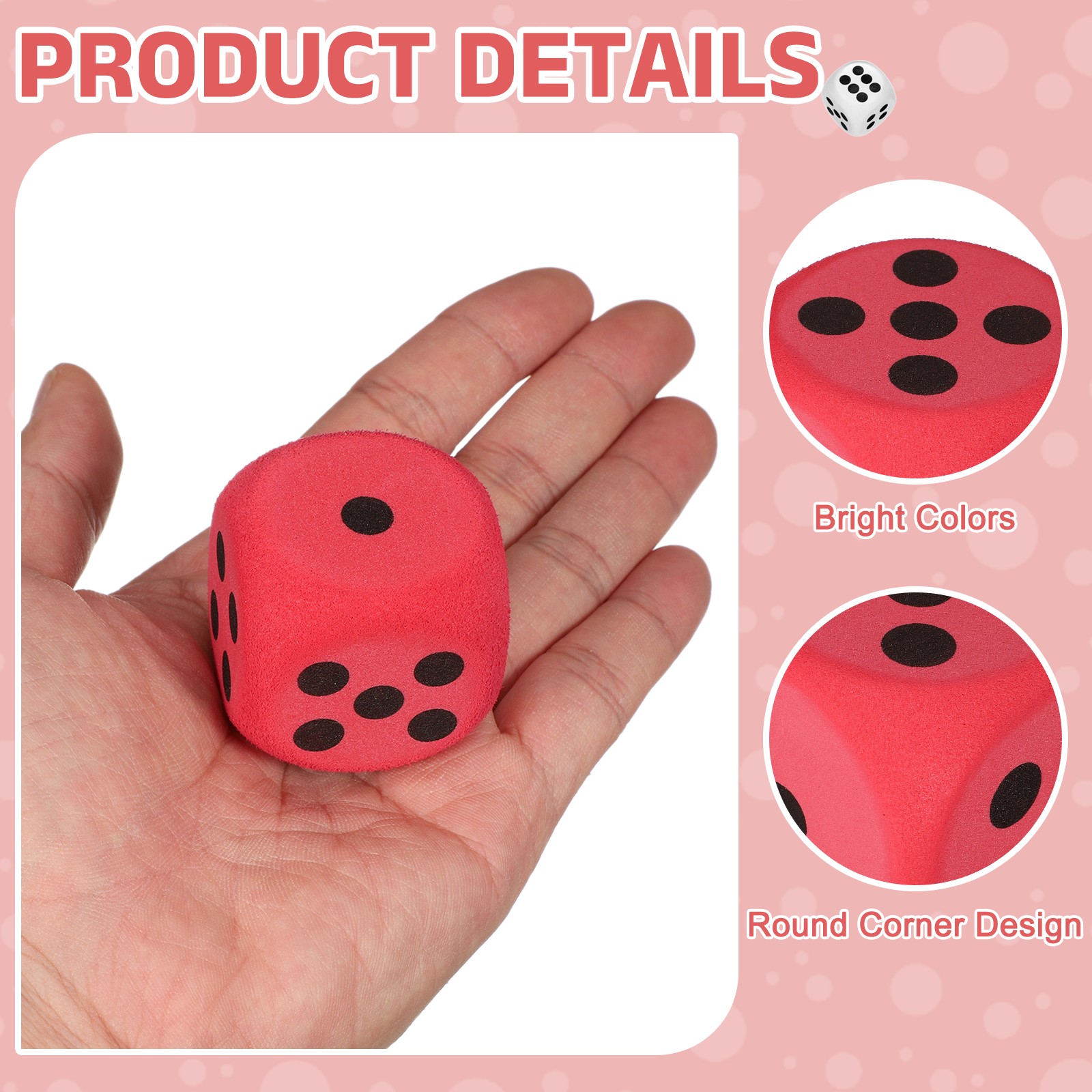2Pcs Foam Dice, 3.8cm/1.5inch Six-Sided Dice Stress Ball Red