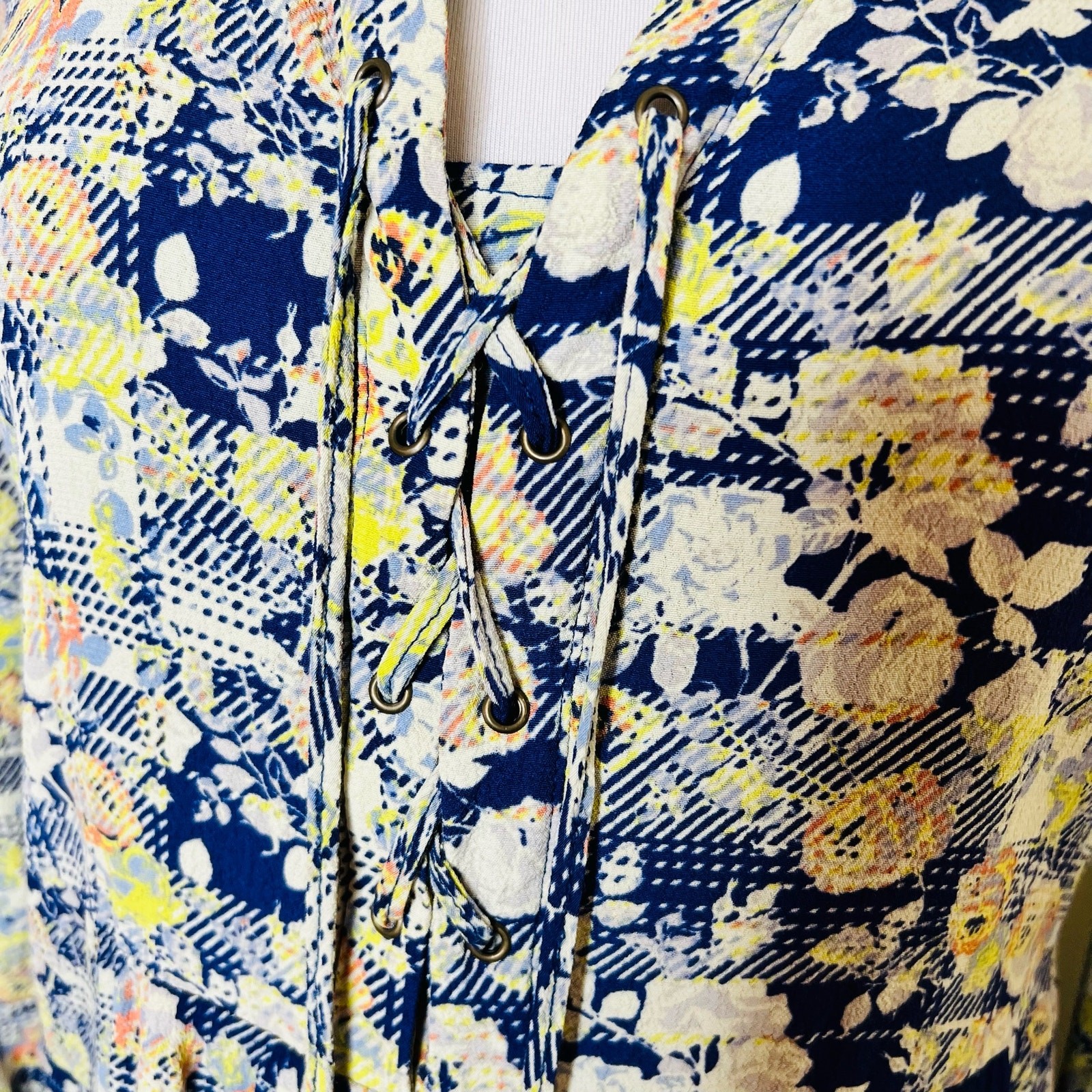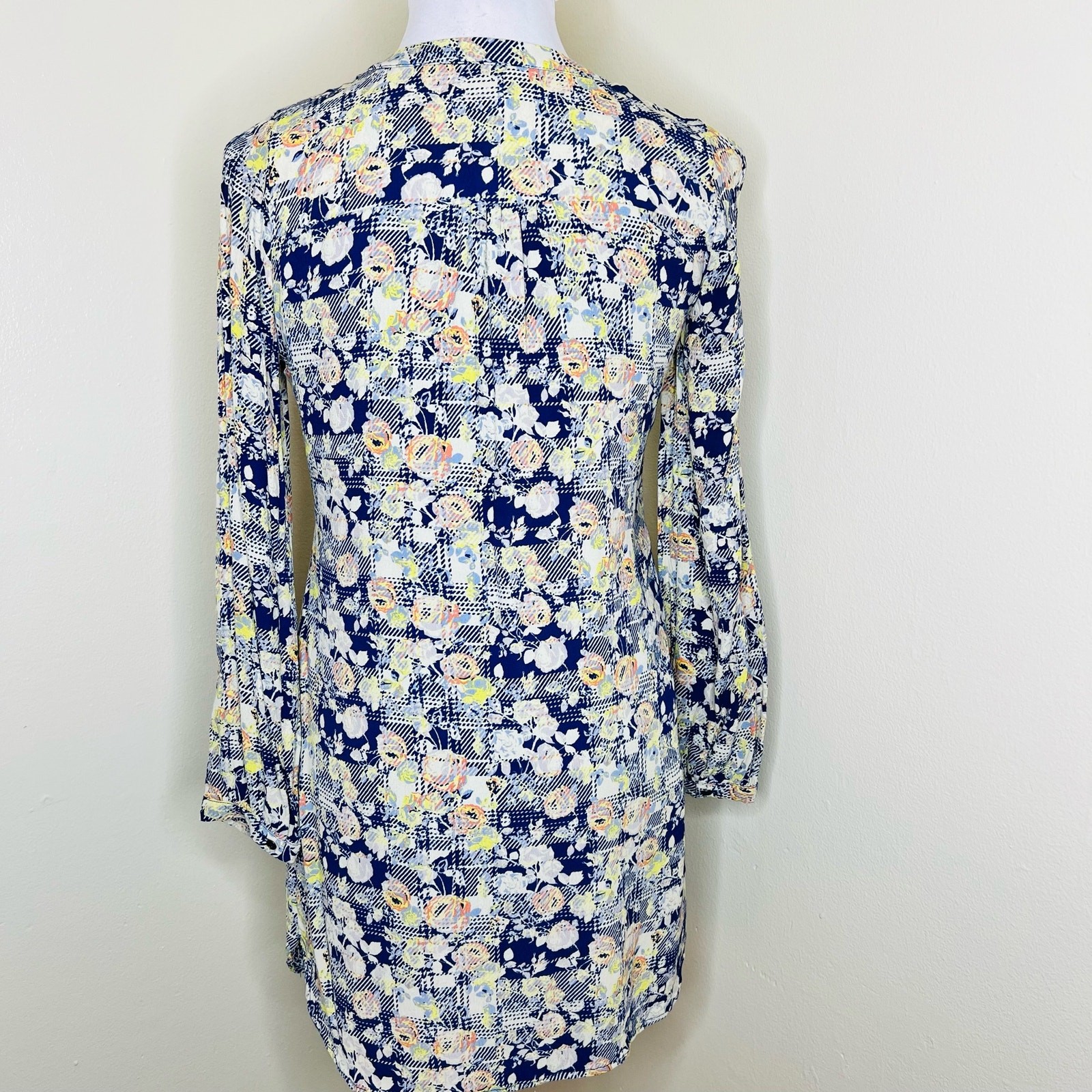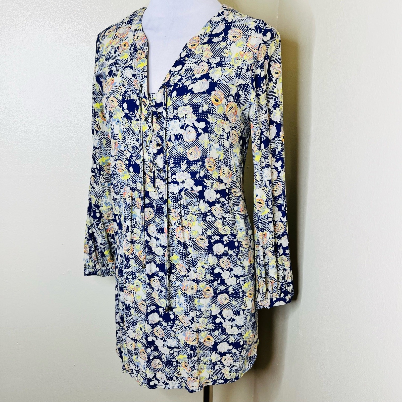 как выглядит Skies are Blue Shift Dress XS Floral Peasant Lace Up Abstract Mini Long Sleeve фото