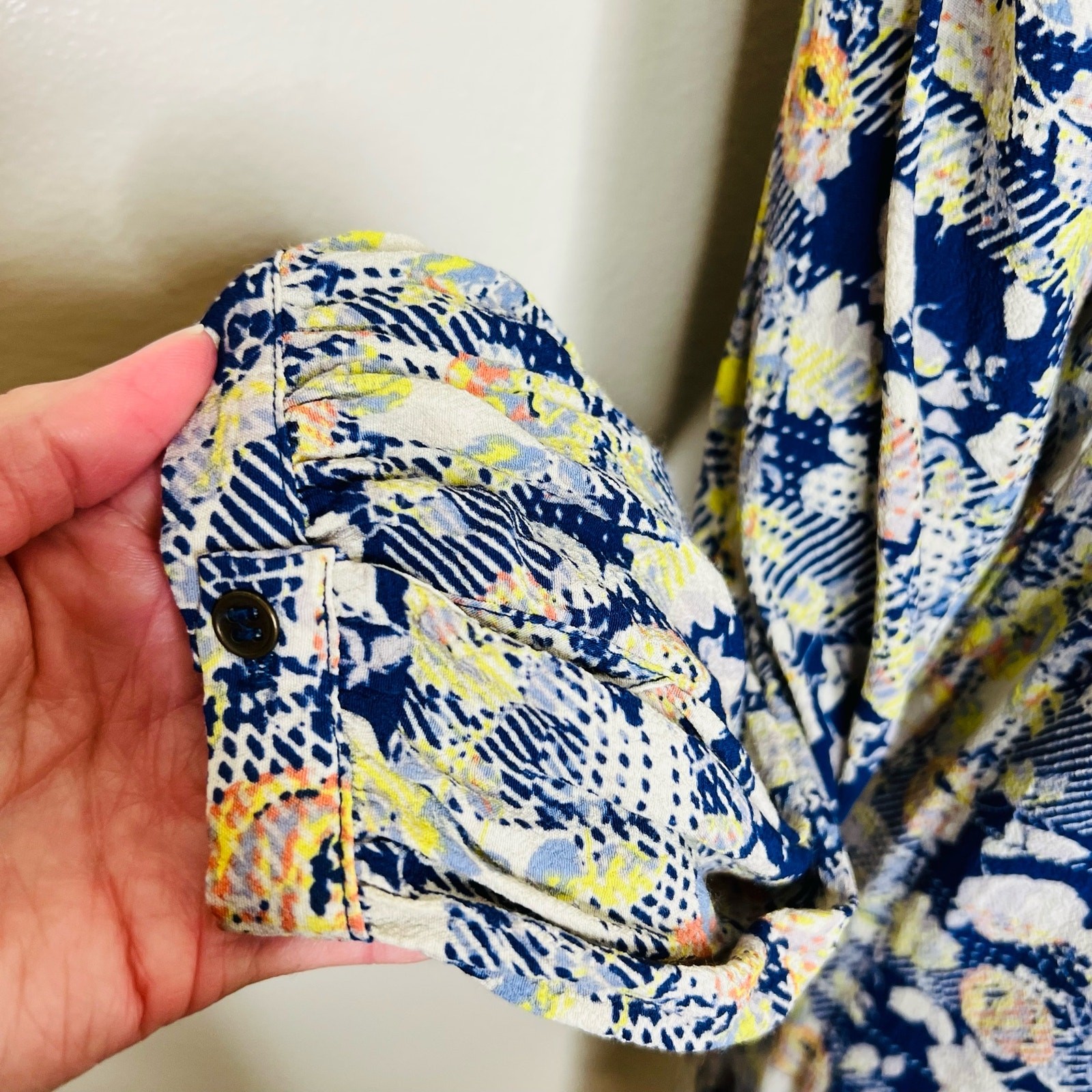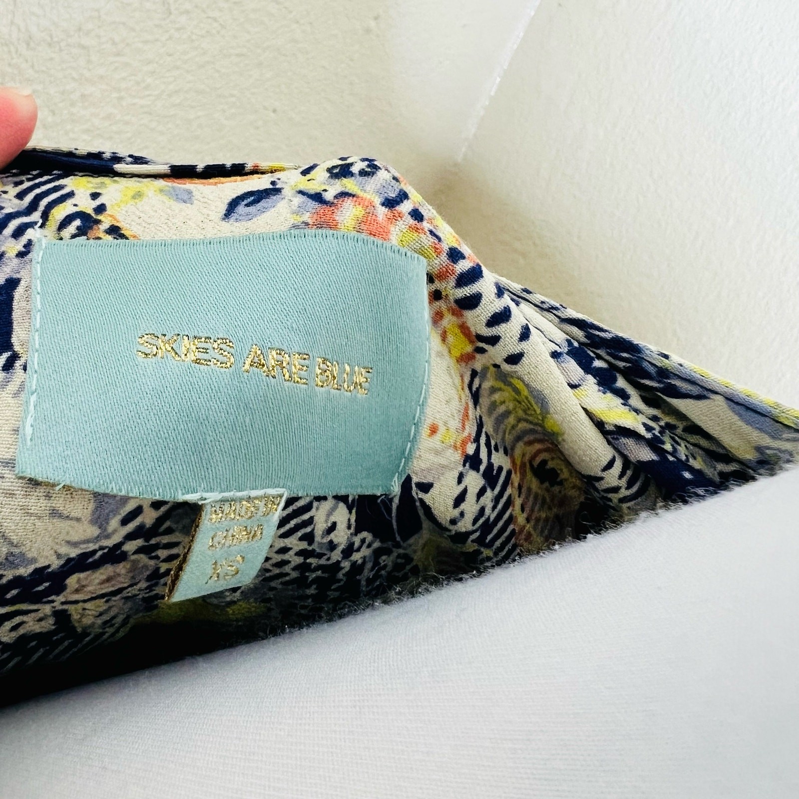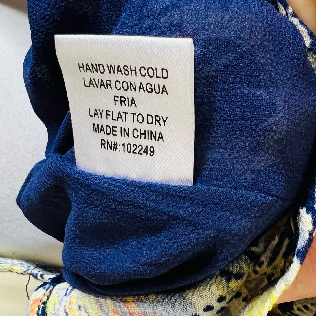 как выглядит Skies are Blue Shift Dress XS Floral Peasant Lace Up Abstract Mini Long Sleeve фото