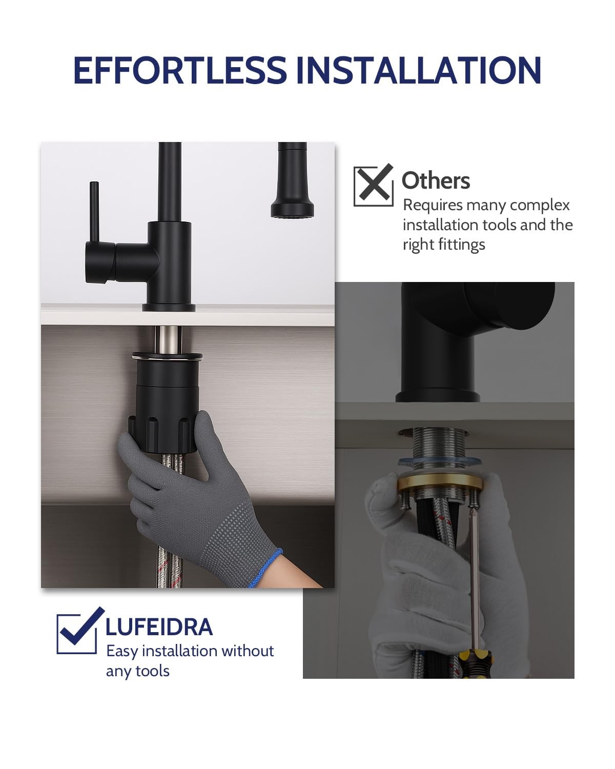 Black Kitchen Faucets with Pull Down Sprayer - High Arc Spring 304 Stainless ...