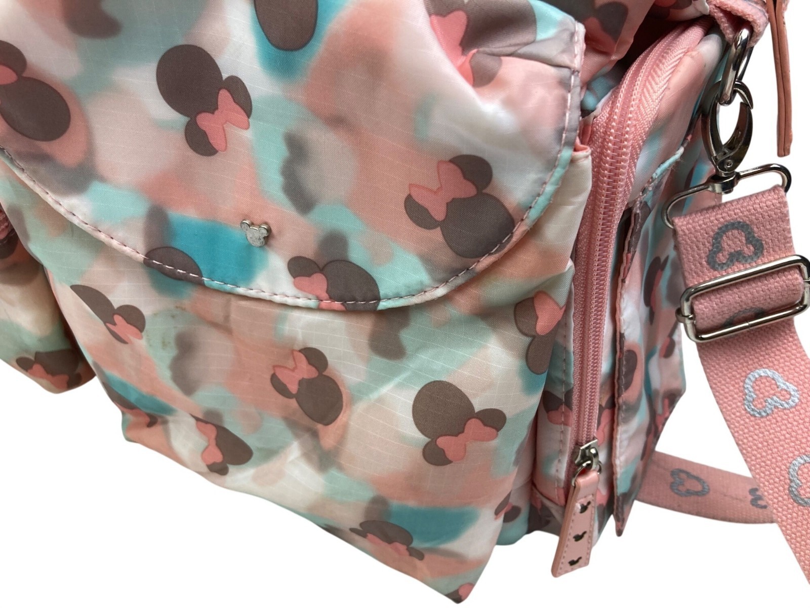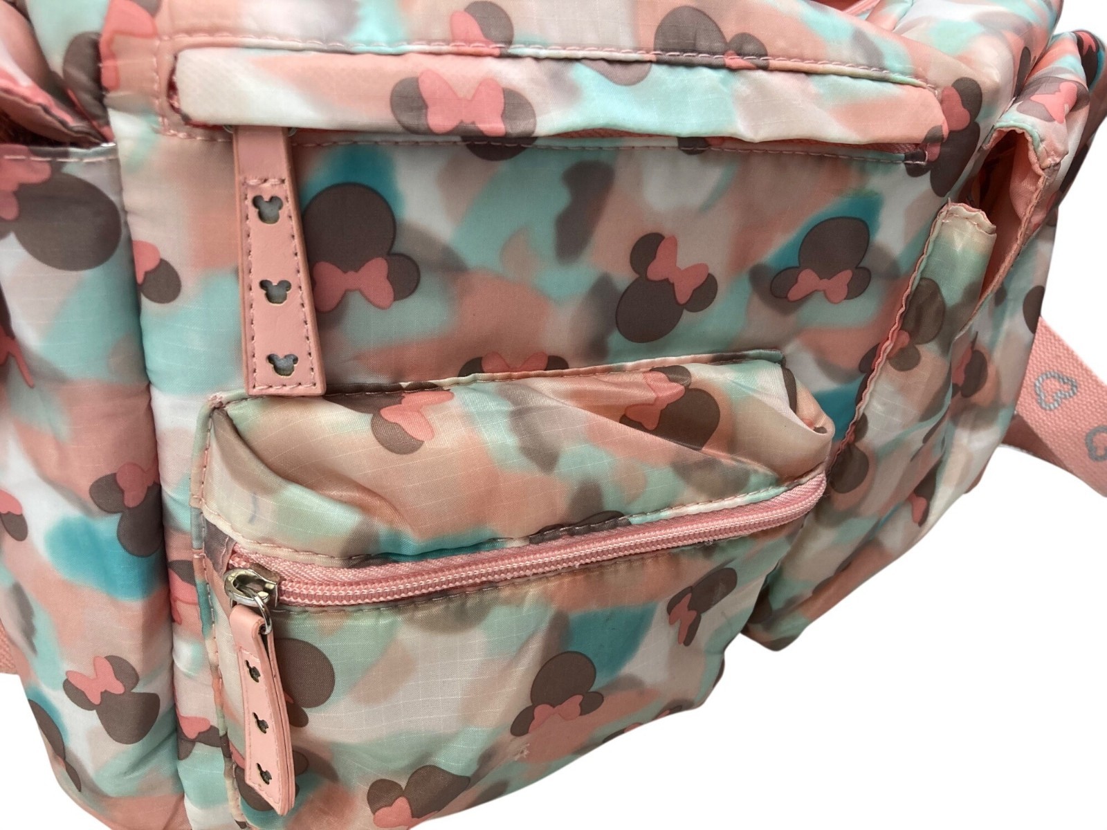Disney Baby Pink Blue Minnie Mouse Pattern Diaper Bag Large Travel Tote