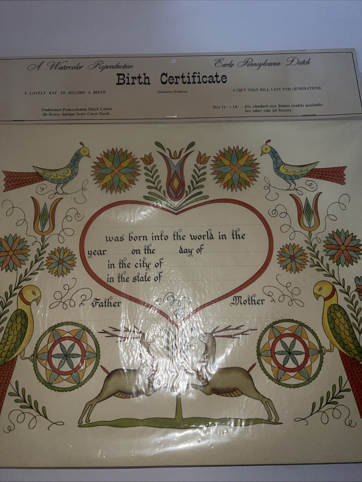 Jacob Zook Birth Certificate Blank Early Pennsylvania Dutch 1967 VTG NEW
