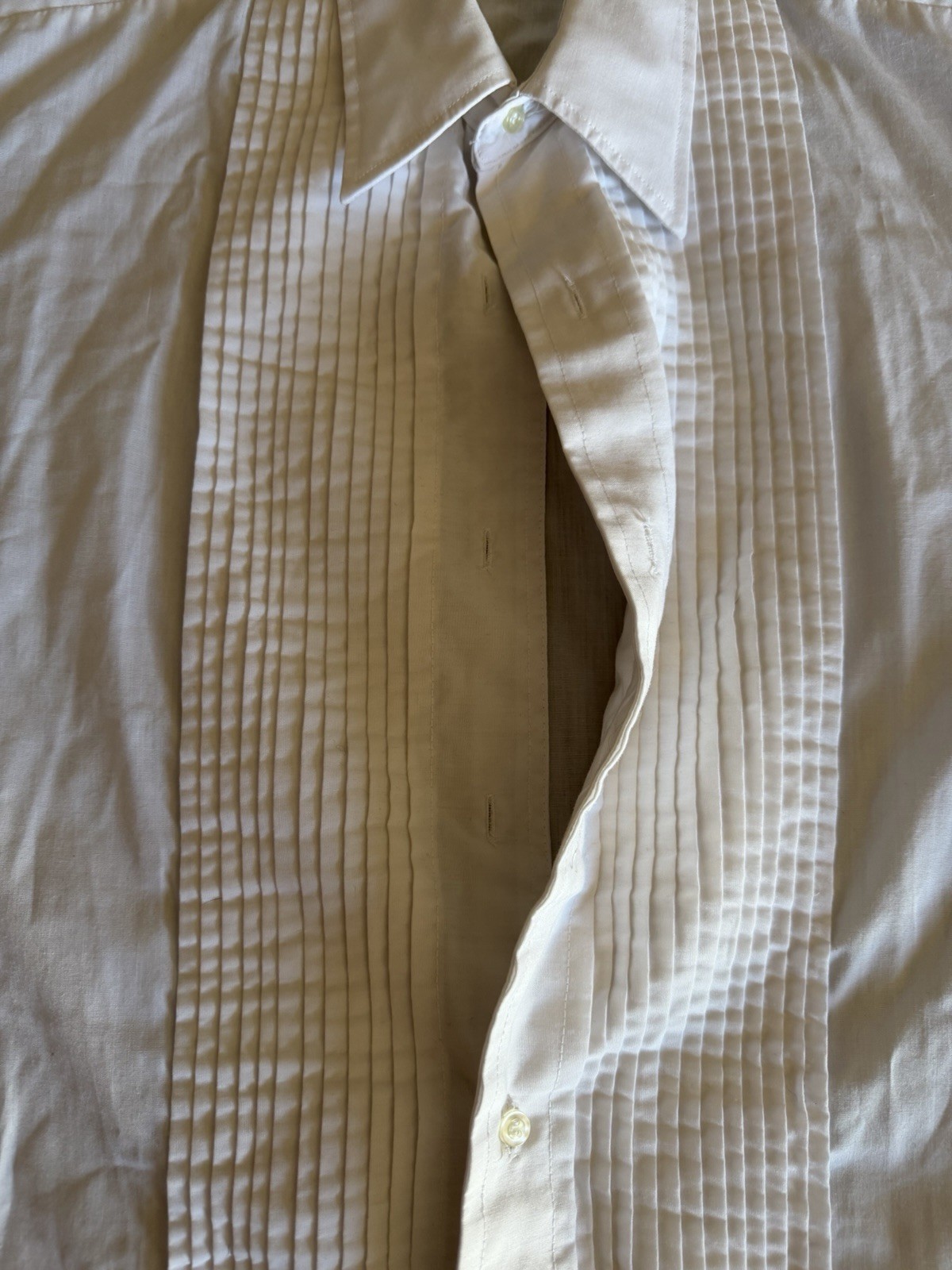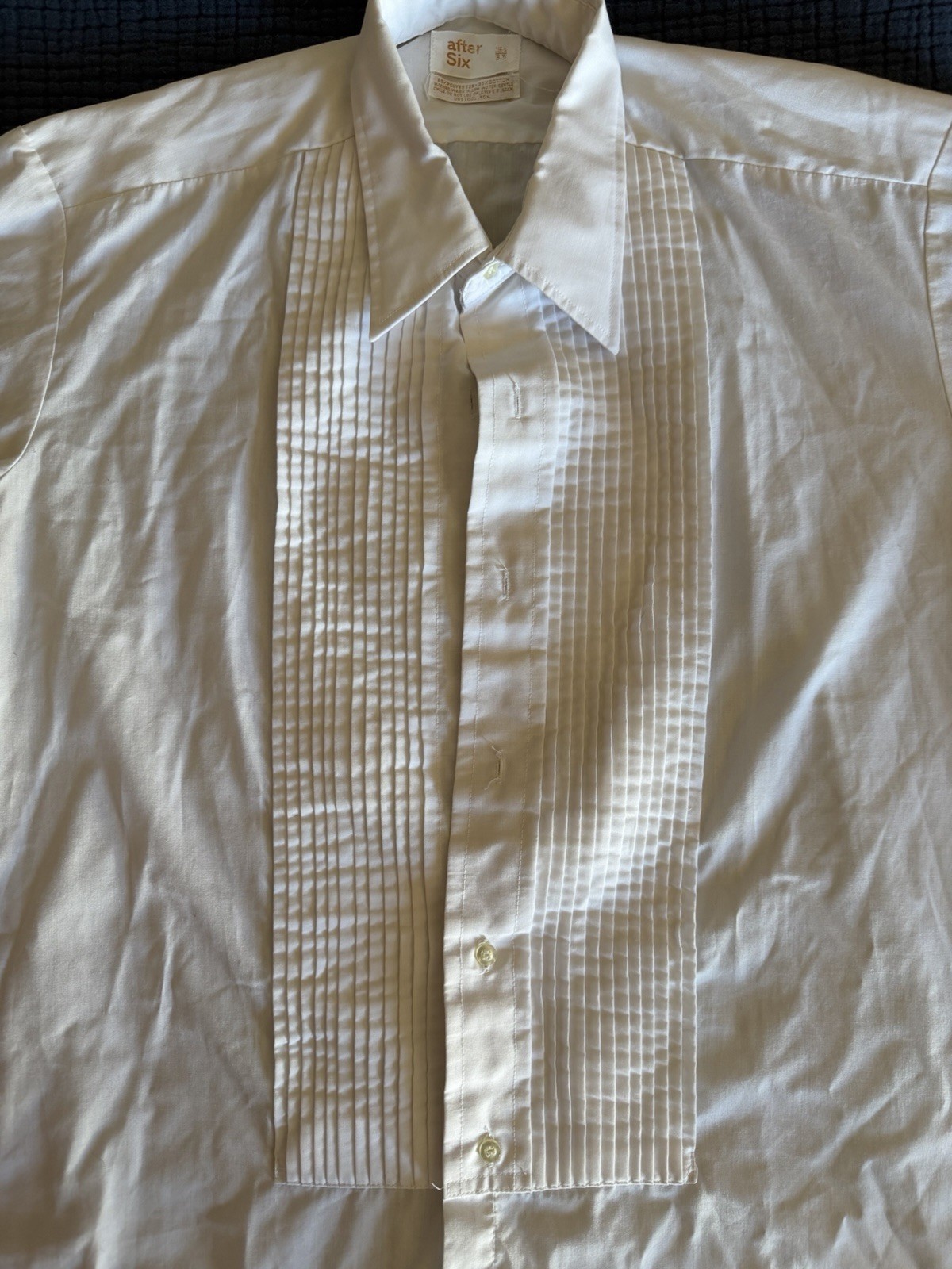 Vintage After Six Tuxedo Shirt Men - 15 1/2 33 -Ivory Pleated Poplin French Cuff