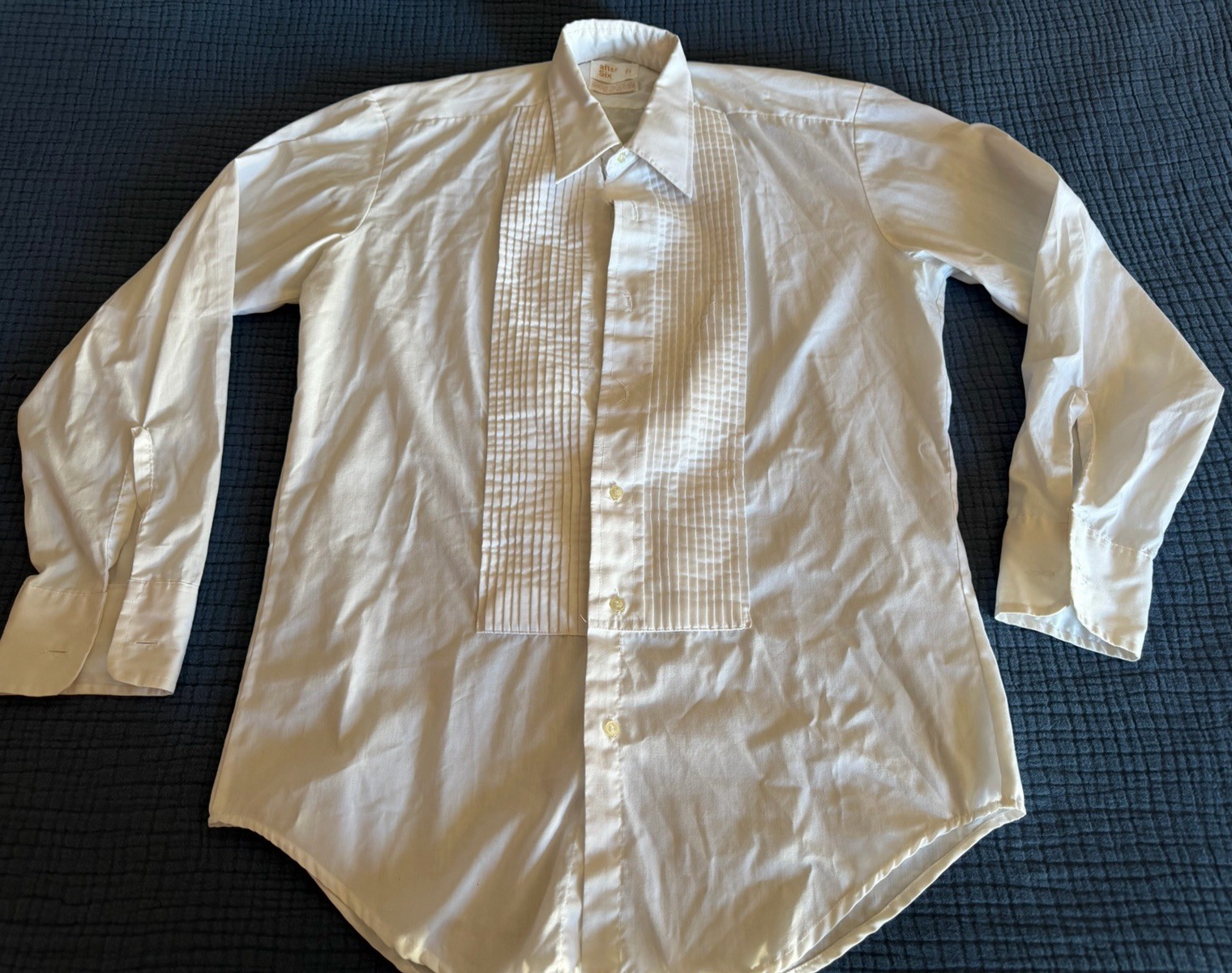 как выглядит Vintage After Six Tuxedo Shirt Men - 15 1/2 33 -Ivory Pleated Poplin French Cuff фото