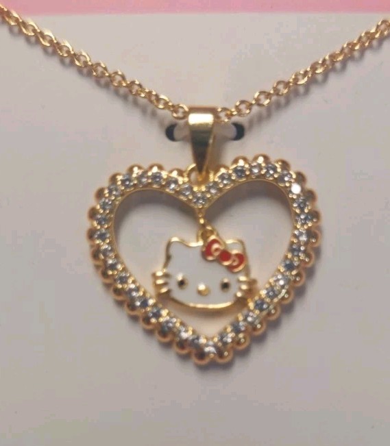 как выглядит Hello Kitty Gold Flash Plated Heart Pendant Necklace With Charm New In Box фото