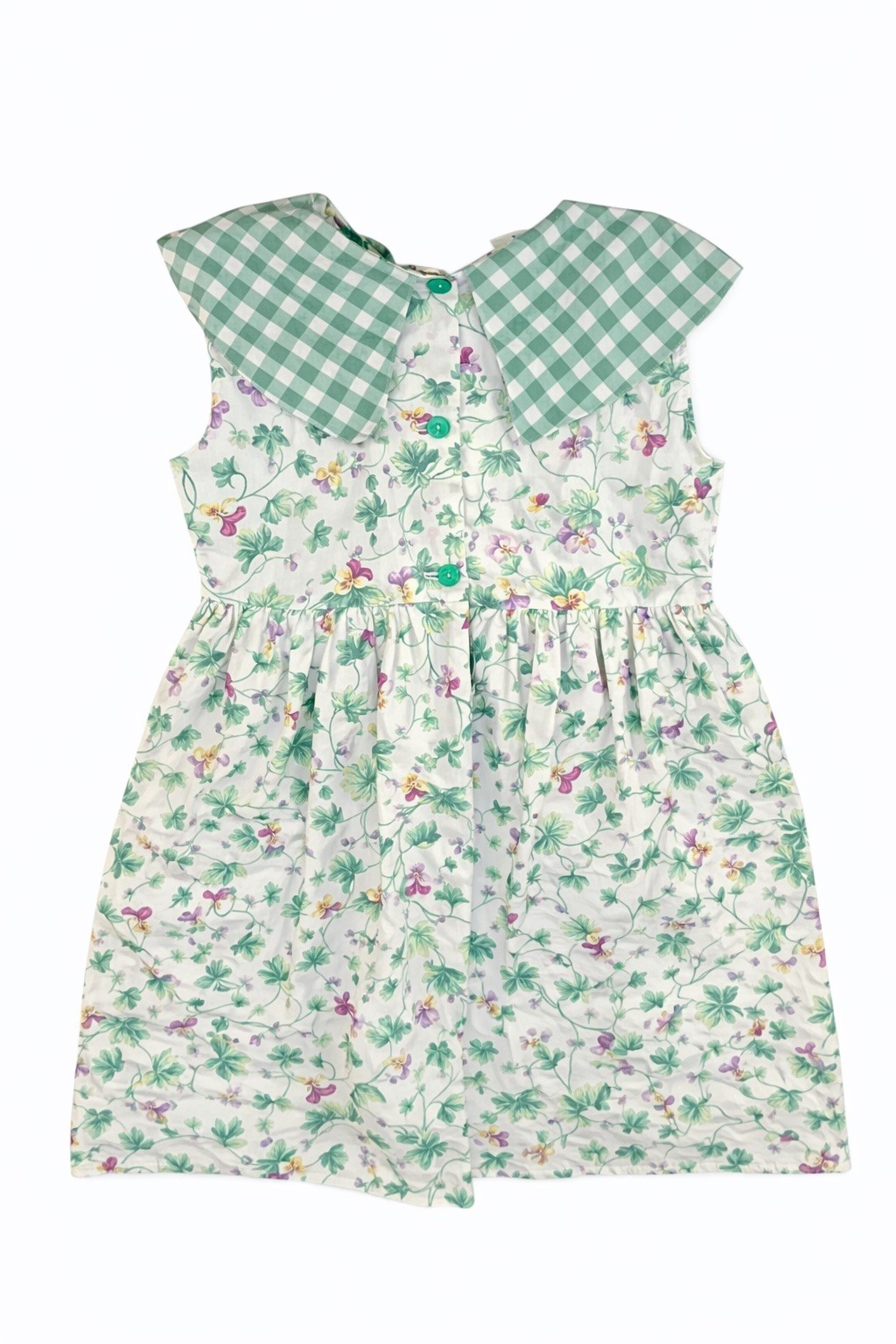 Brittany Christine Girls Size 4 Floral Cotton Dress Green Gingham Collar