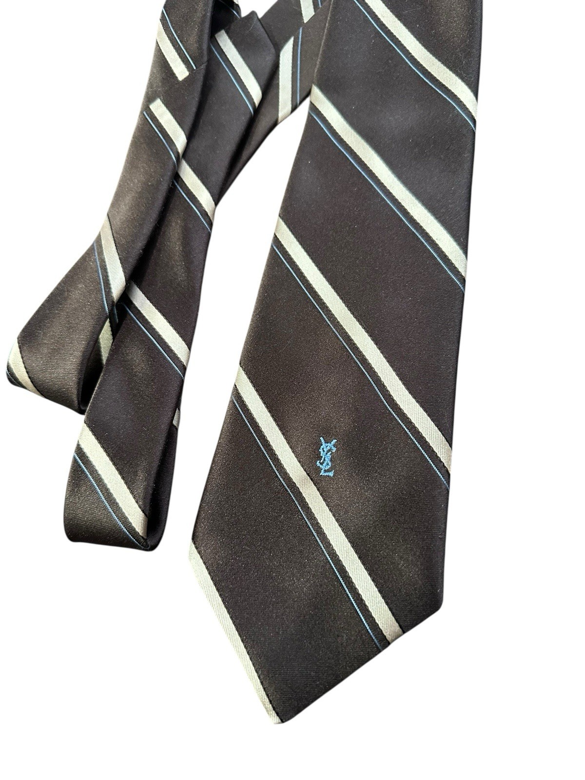 Vintage YSL Yves St Laurent Brown Striped Men's Poly Silk USA MADE Neck Tie
