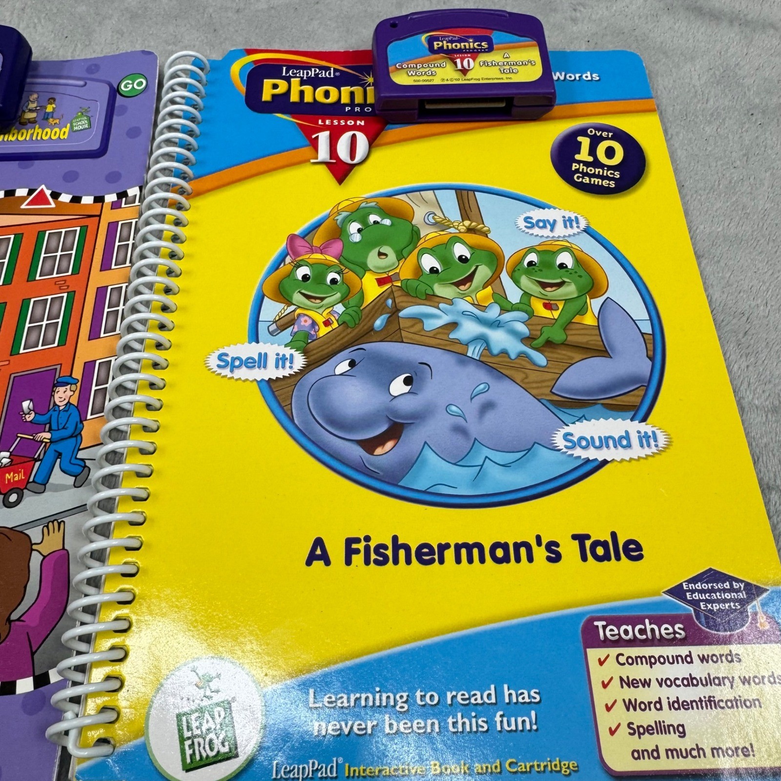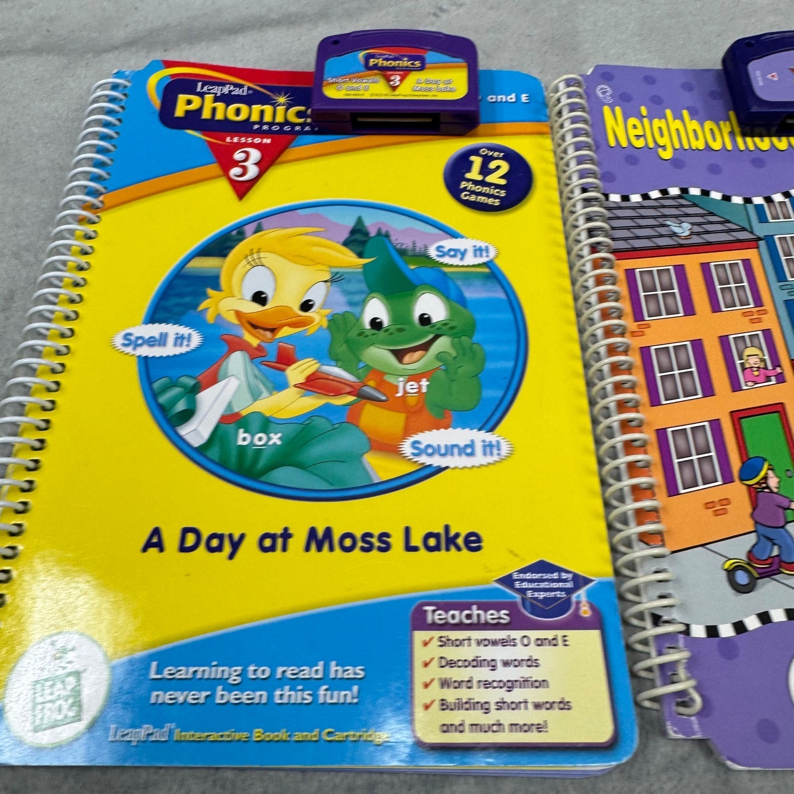 LeapFrog LeapPad Phonics Lesson 3 10 and Neighborhood Books with Cartridges Lot
