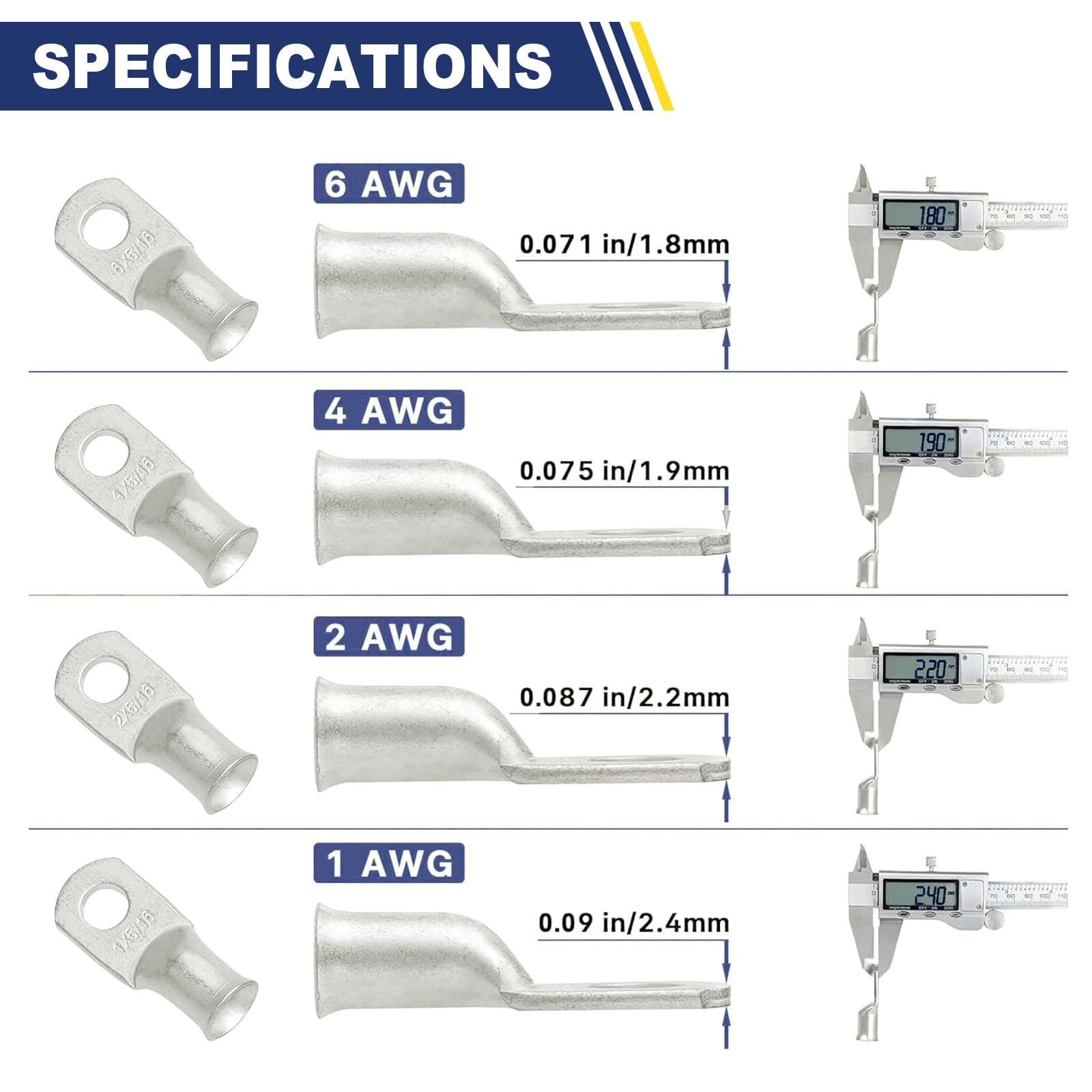Wire Lugs Kit,76PCS Tinned Copper Lugs with 3:1 Heat Shrink Tubing,Heavy Duty...