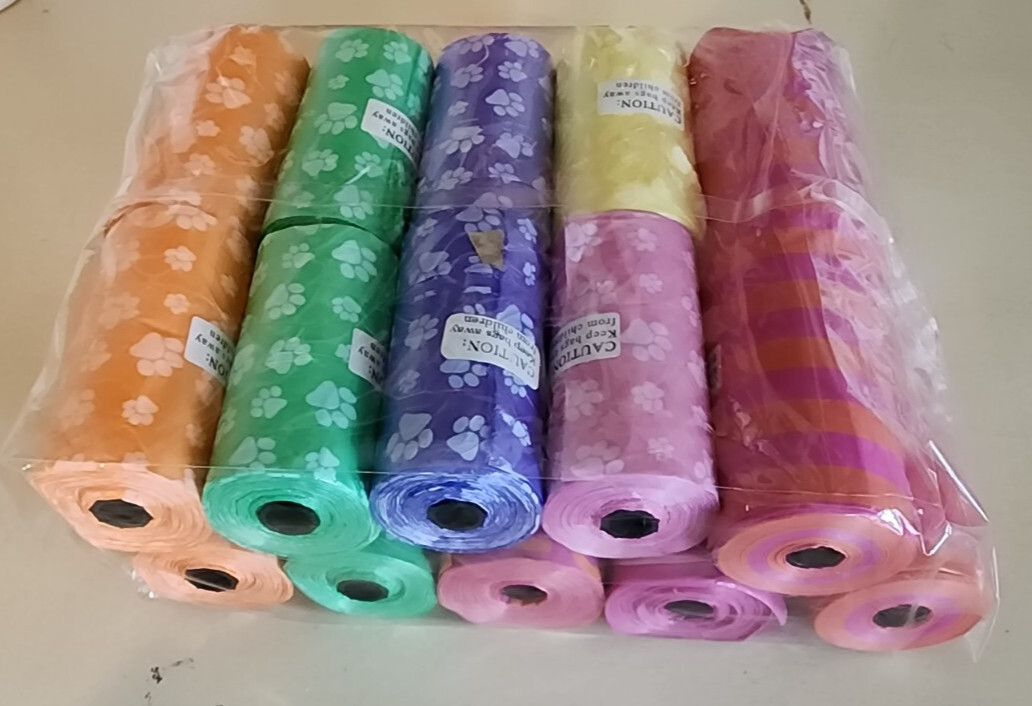 DOG PET WASTE POOP BAGS Large - REFILL ROLLS multicolor w/ free carrier