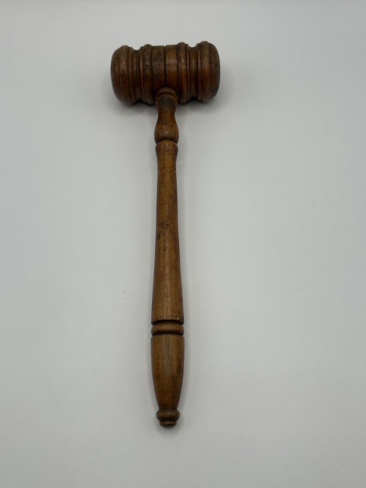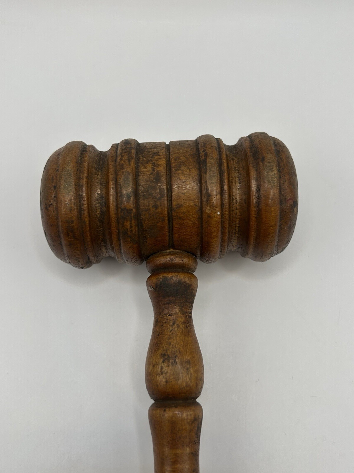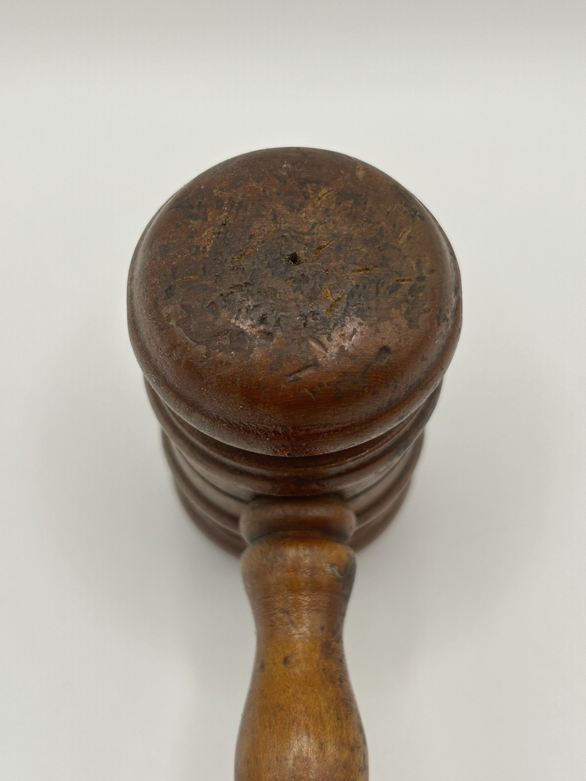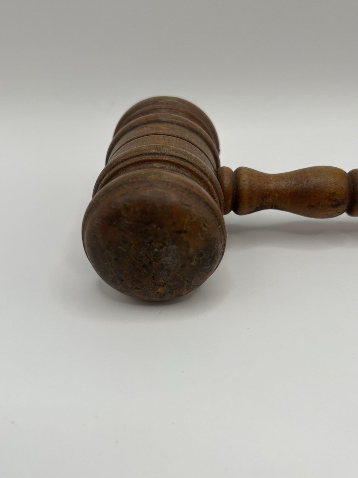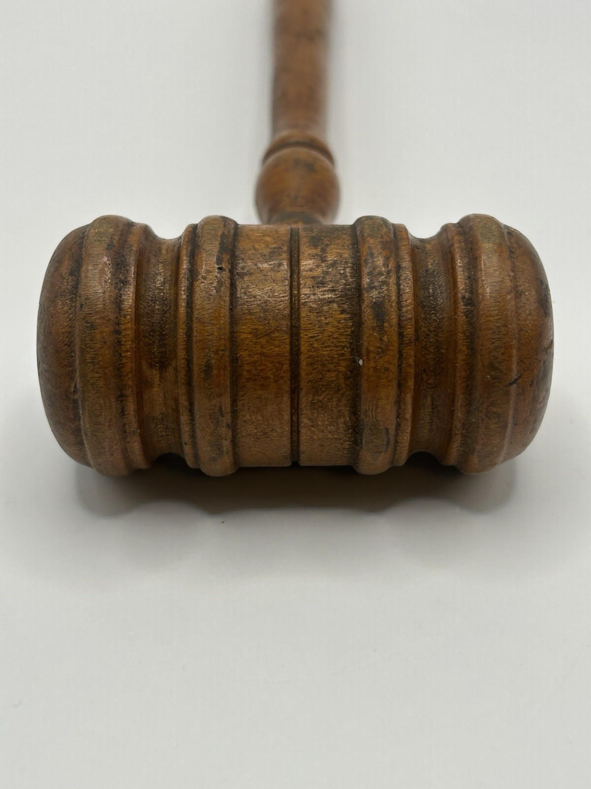 Vintage Hand Turned Wooden Judge Magistrate Gavel Judicial Law Wood Mallet Brown