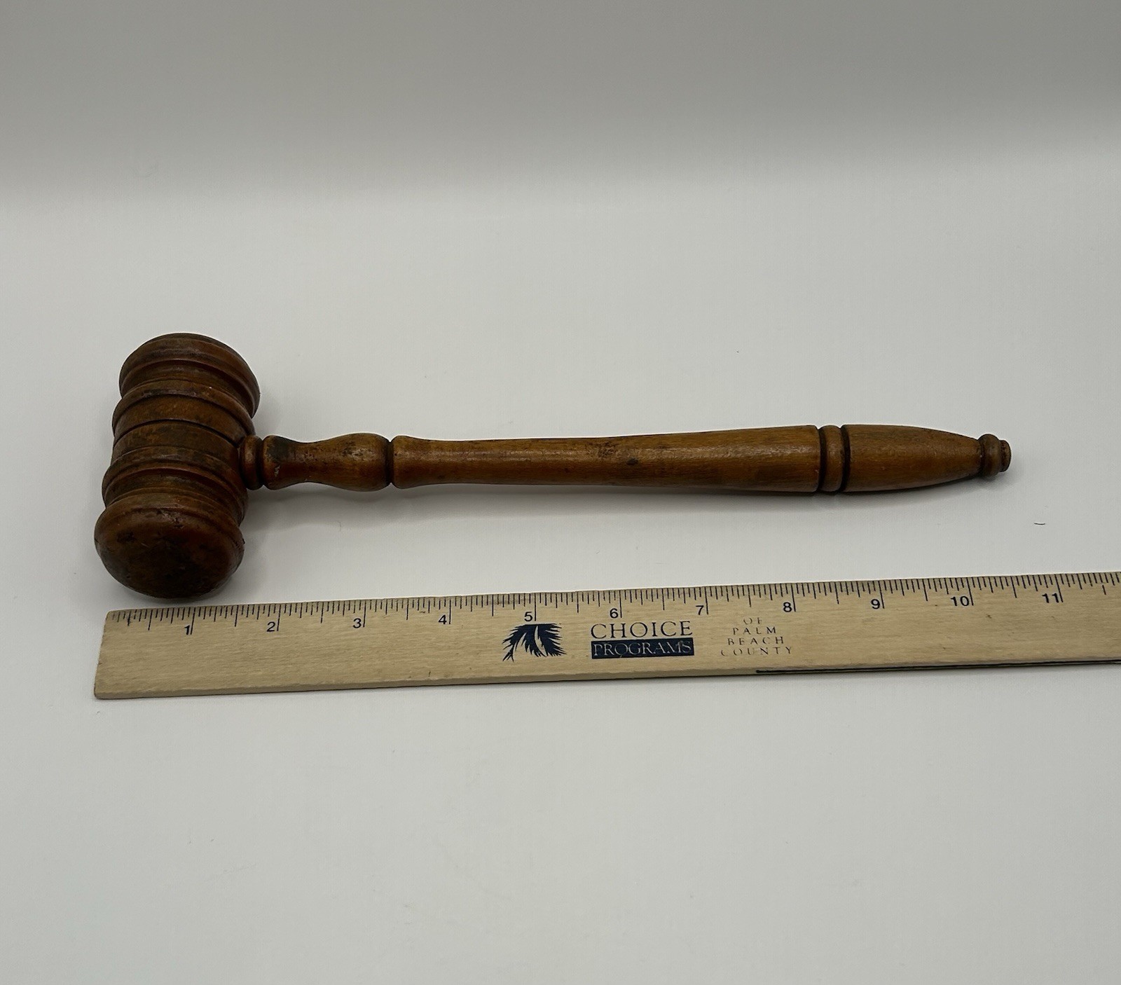 • Vintage Hand Turned Wooden Judge Magistrate Gavel Judicial Law Wood Mallet Brown
