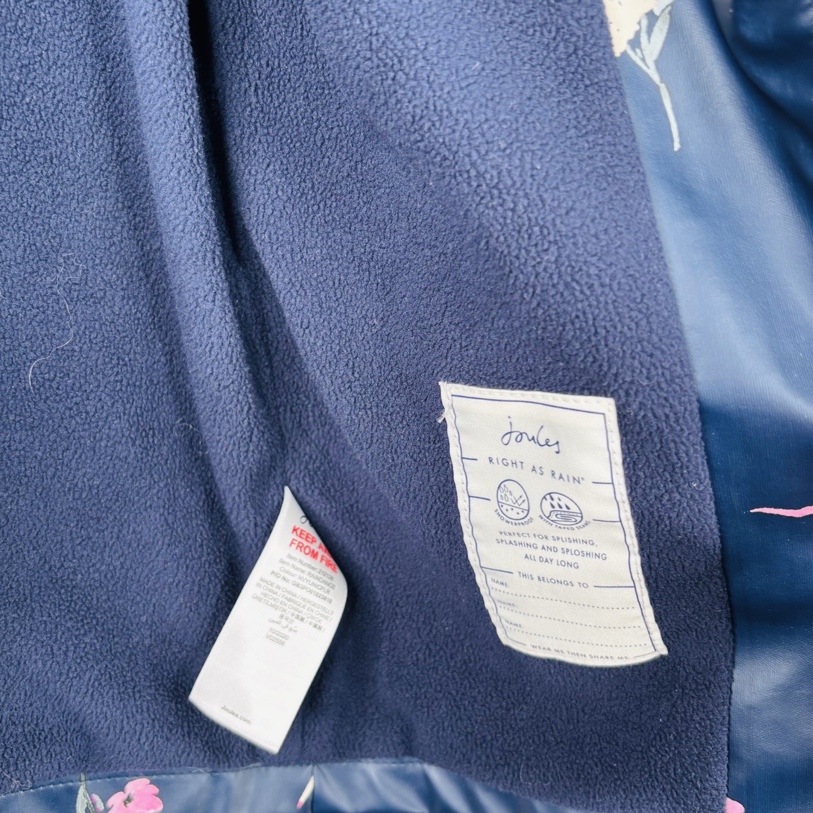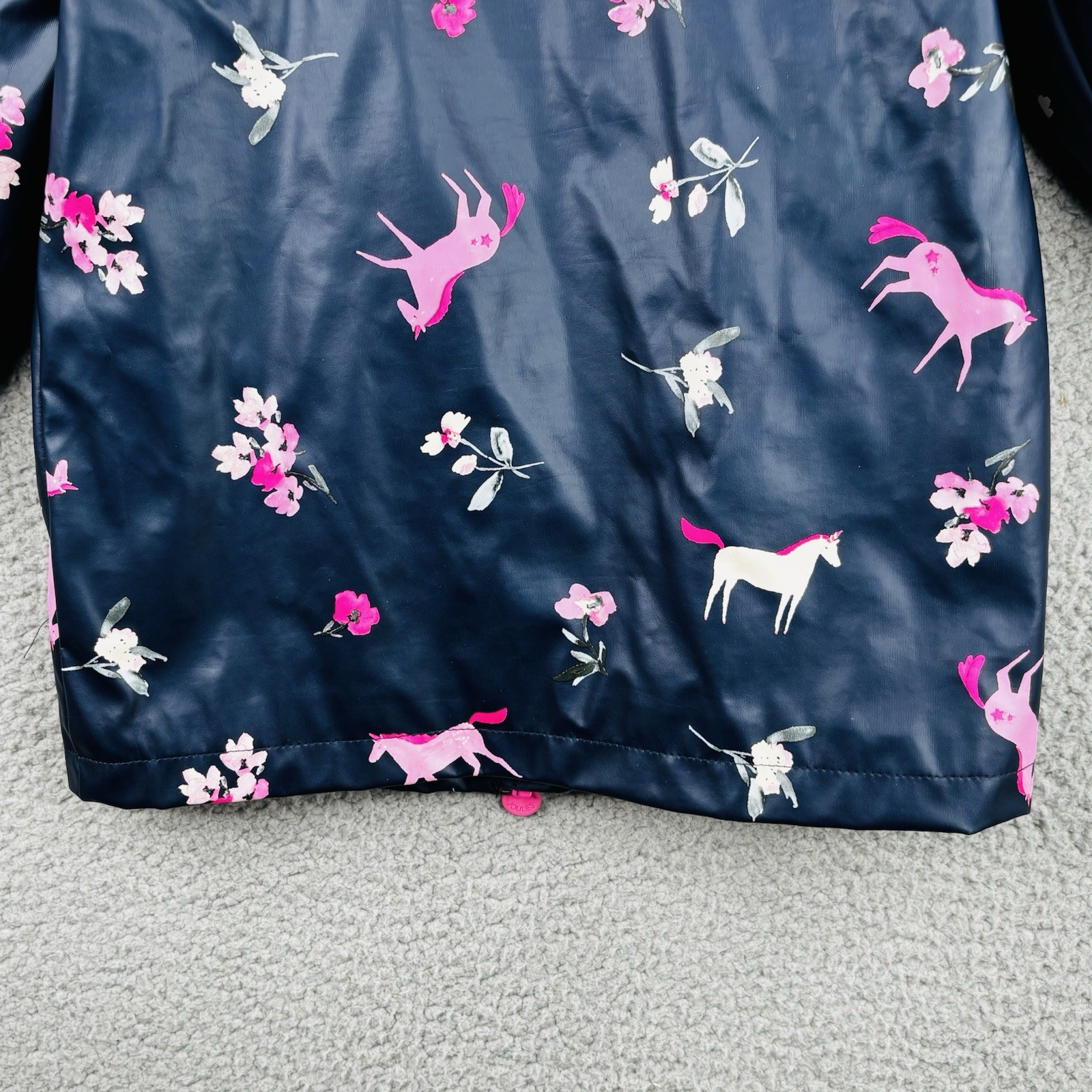 Joules Girls Raindance Jacket Raincoat Unicorns Flowers Navy Blue Size 3