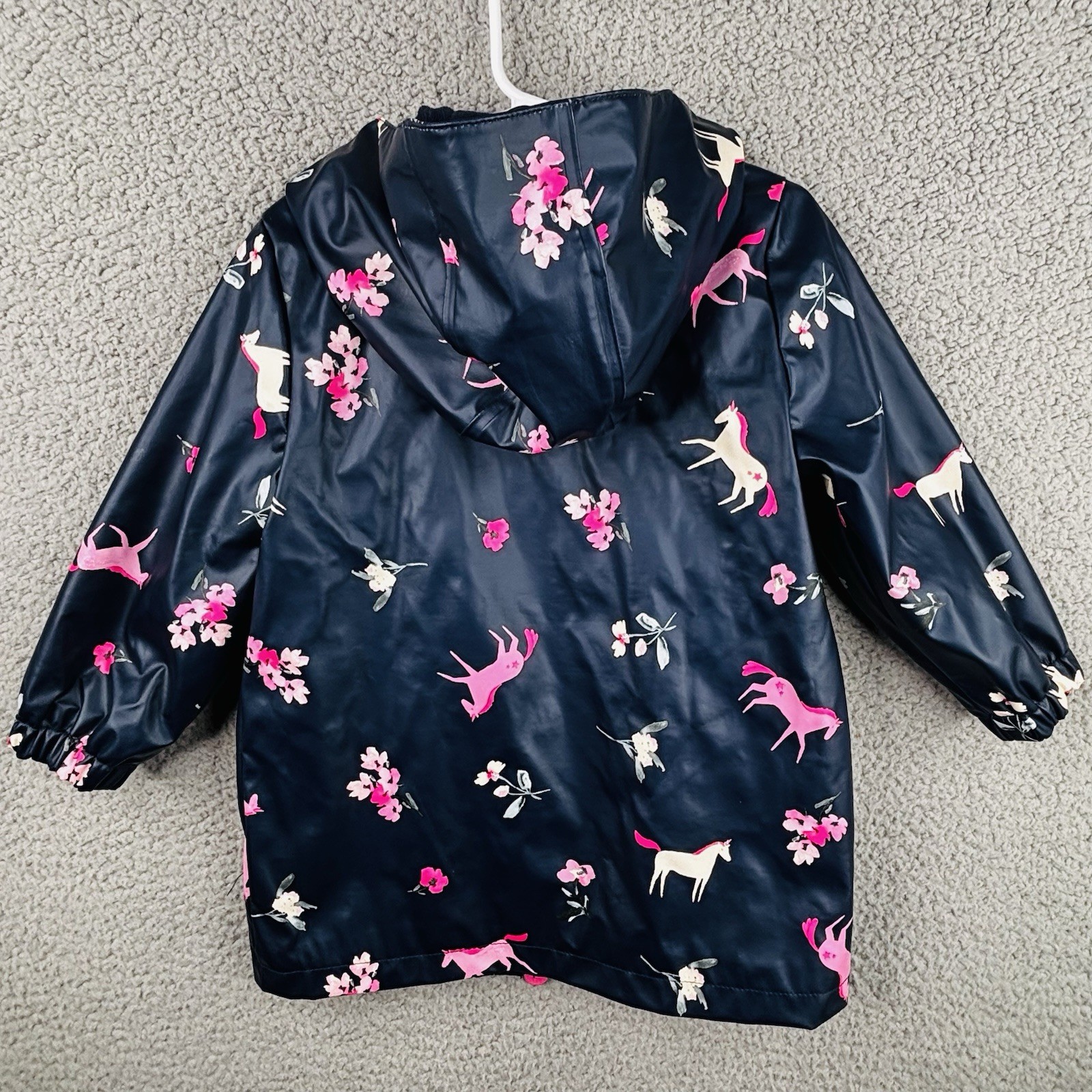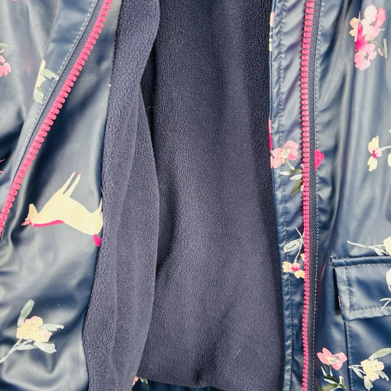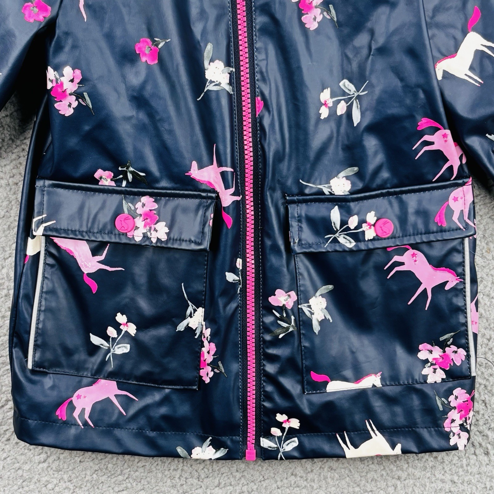 как выглядит Joules Girls Raindance Jacket Raincoat Unicorns Flowers Navy Blue Size 3 фото