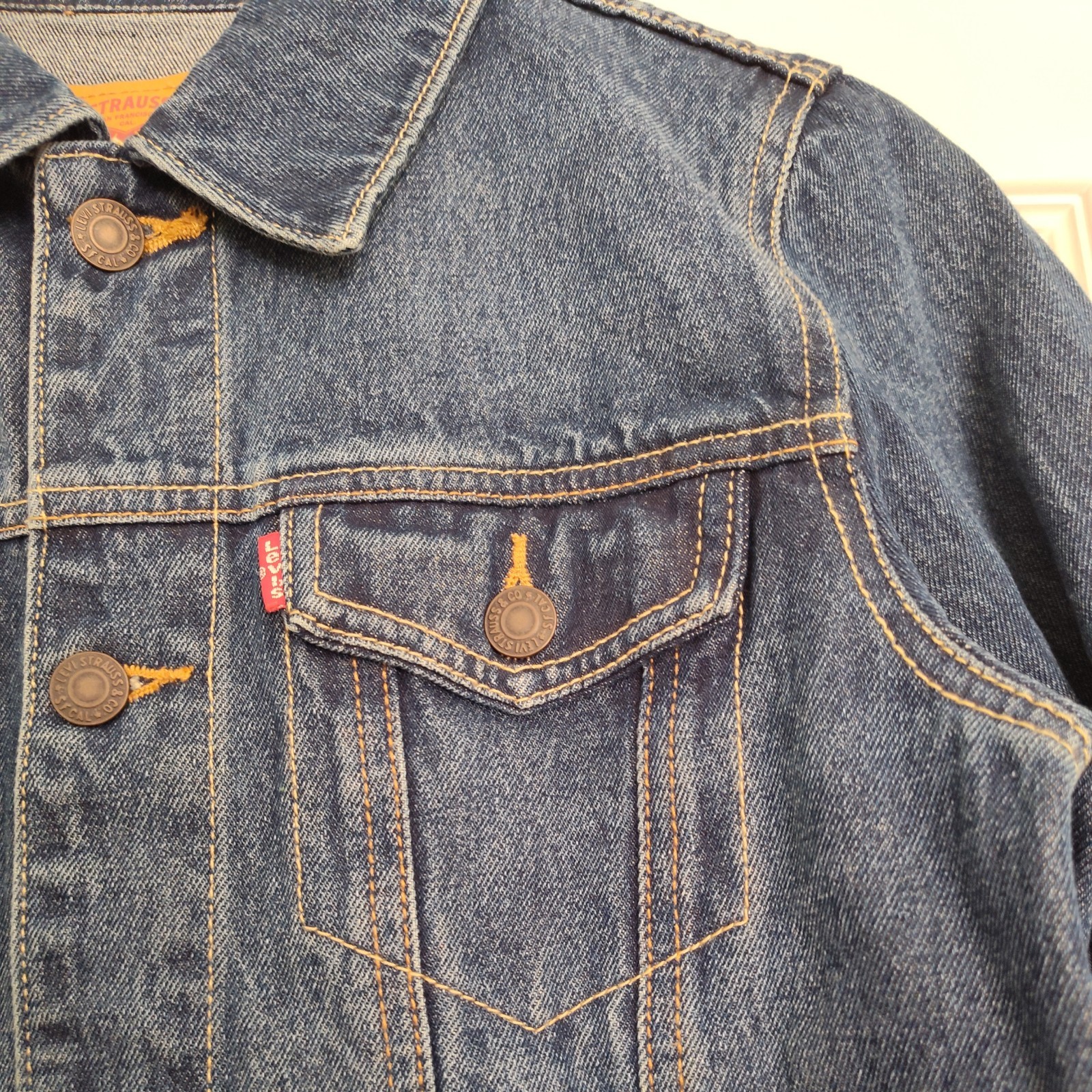 как выглядит Levis Little Boys Denim Embroidered Logo Trucker Jean Jacket Size M 10-12yrs фото