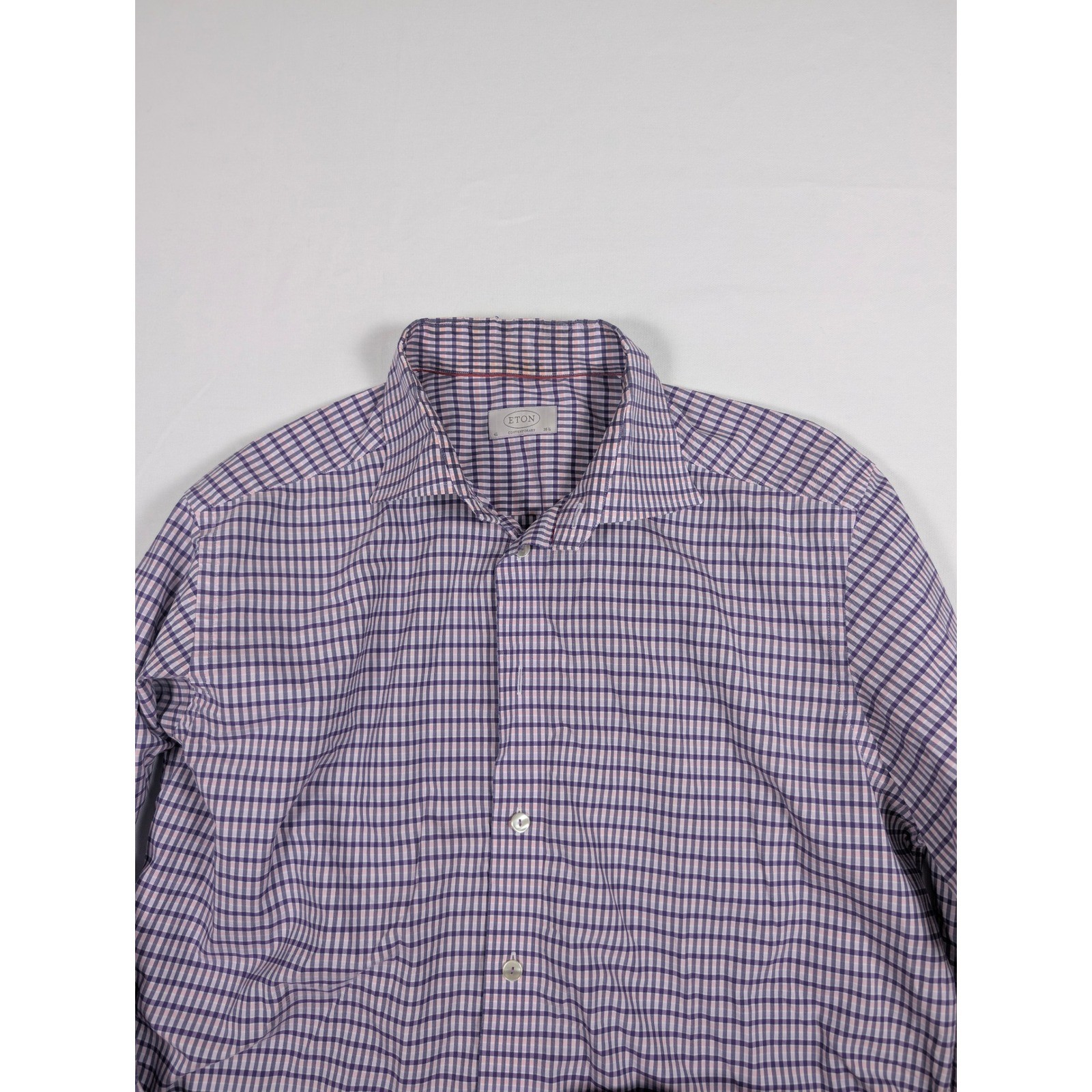 как выглядит Eton Contemporary Fit Dress Shirt Mens 16.5 42 Purple Pink Check 100 Cotton фото