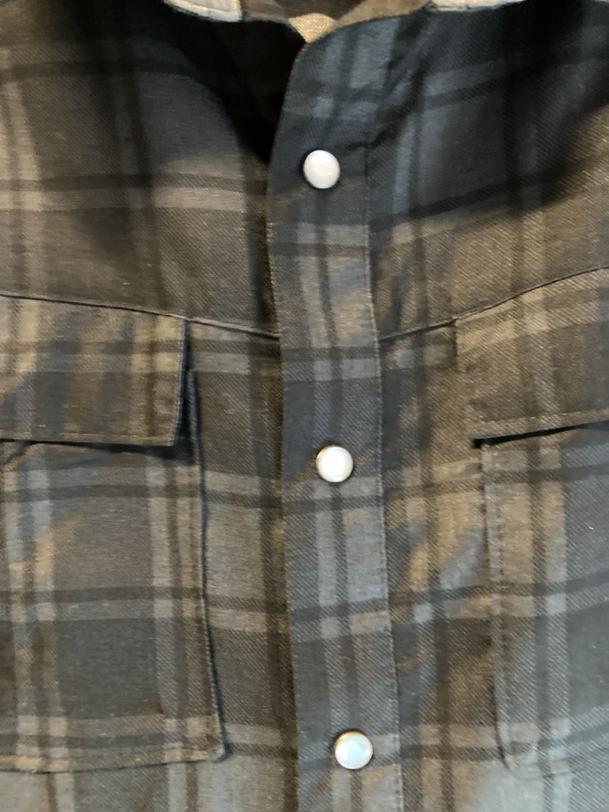 Columbia Mens Plaid Flannel Pearl Snap Button Front Shirt Large Black Gray