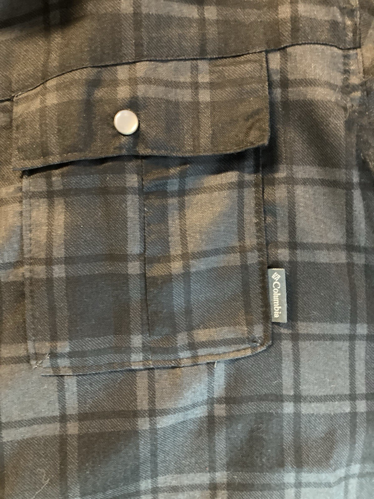 как выглядит Columbia Mens Plaid Flannel Pearl Snap Button Front Shirt Large Black Gray фото