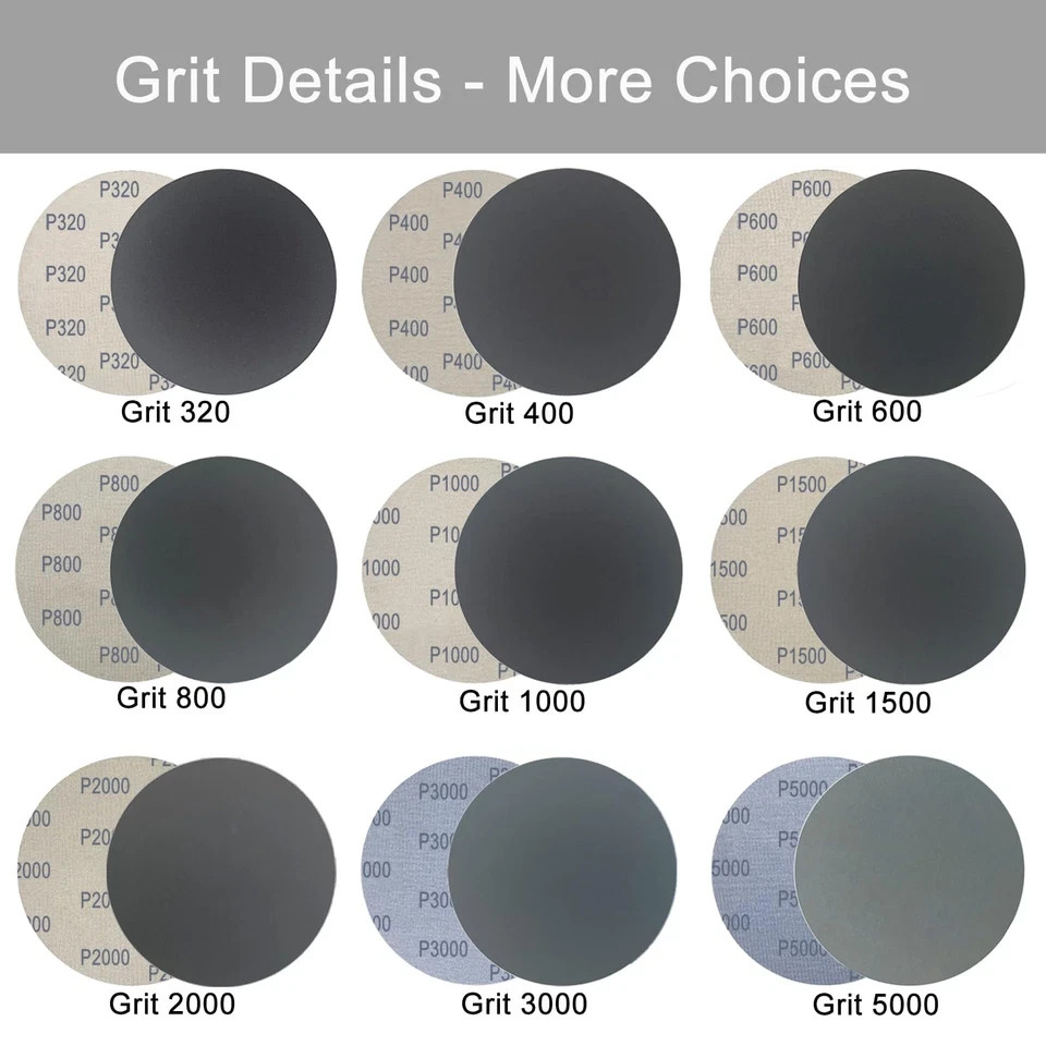 как выглядит 6 Inch 50 Pcs Wet Dry Sanding Discs Hook and Loop, 320 400 600 800 1000 Assorted фото