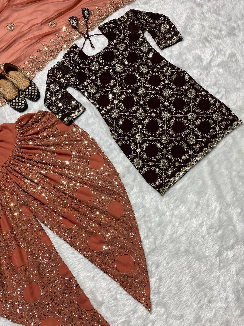 Dhoti Work: Digital Print And Embroidery 5mm Sequence Work