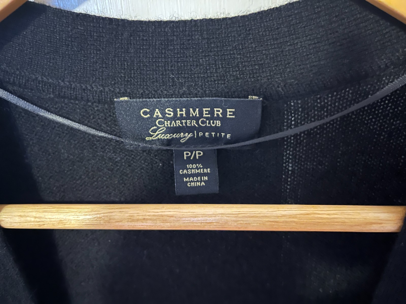 как выглядит Charter Club Luxury 100 Cashmere Cardigan Sweater Black Petite Women фото