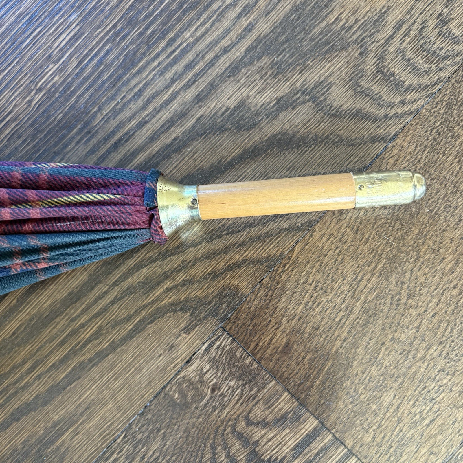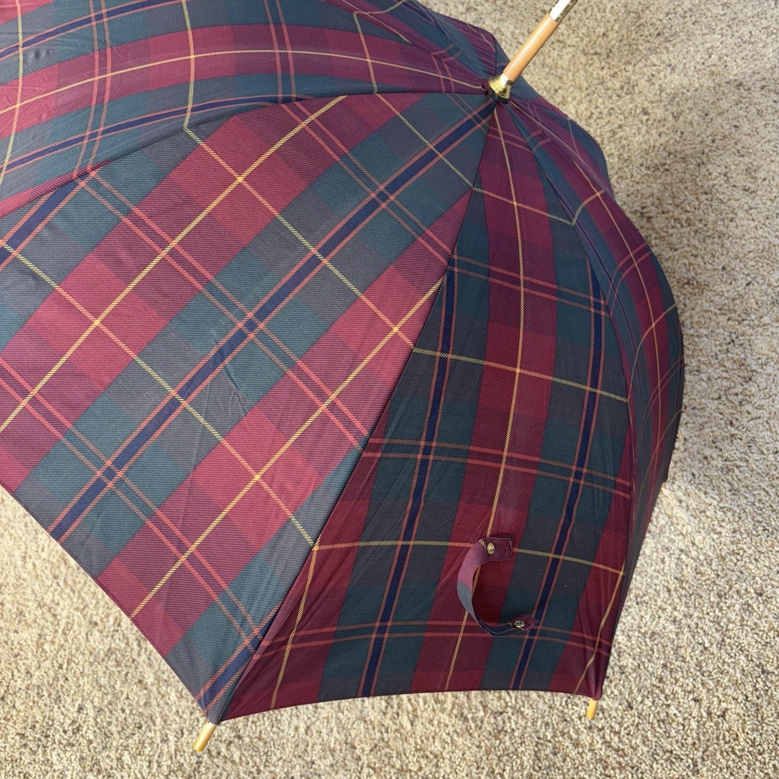 Polo Ralph Lauren Tartan Plaid BIG PONY Doorman Wood Hook Umbrella VINTAGE 90s
