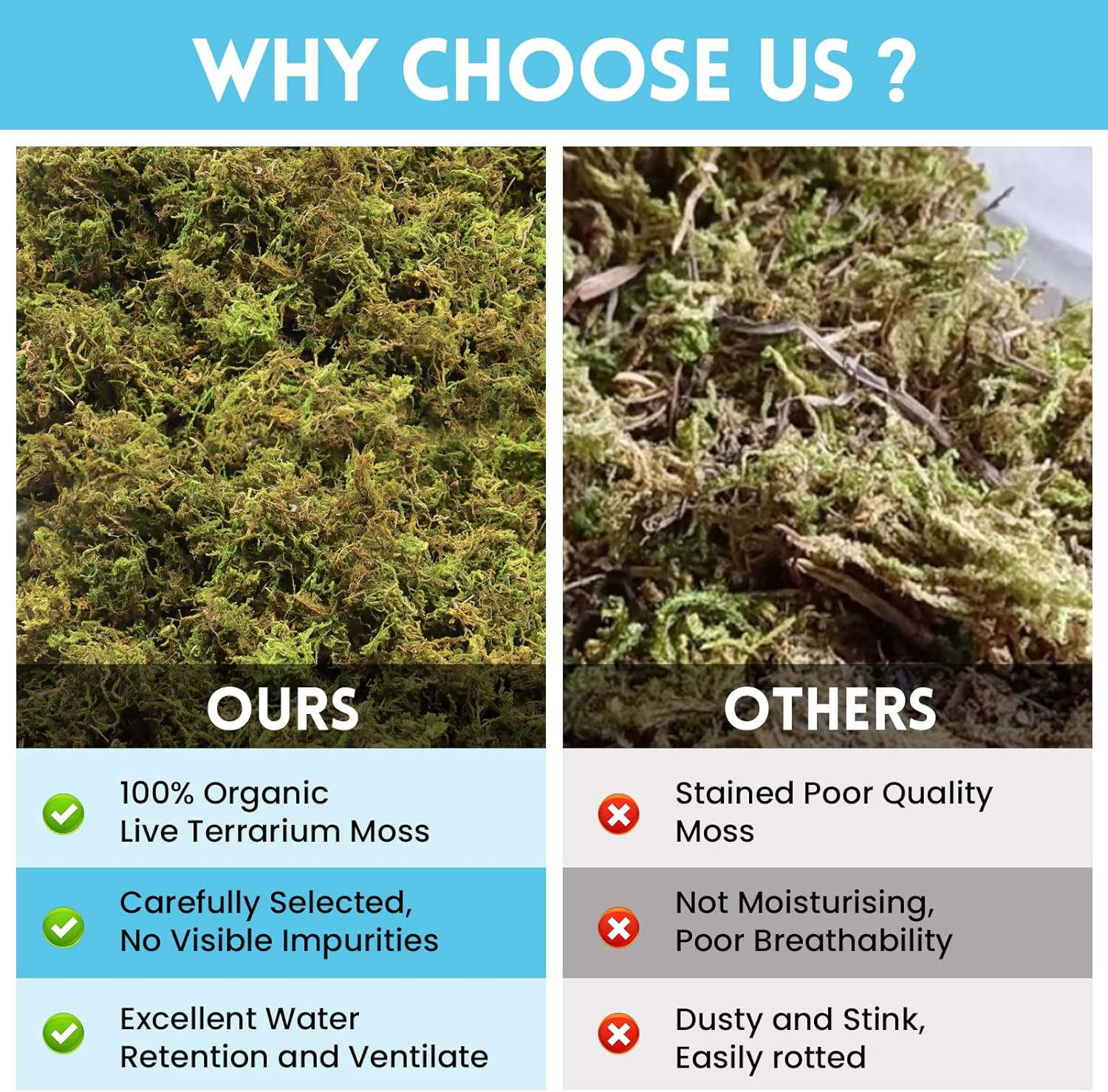 7 OZ Premium Sphagnum Moss for Reptiles- 10QT Natural Live Moss Reptile Moss ...