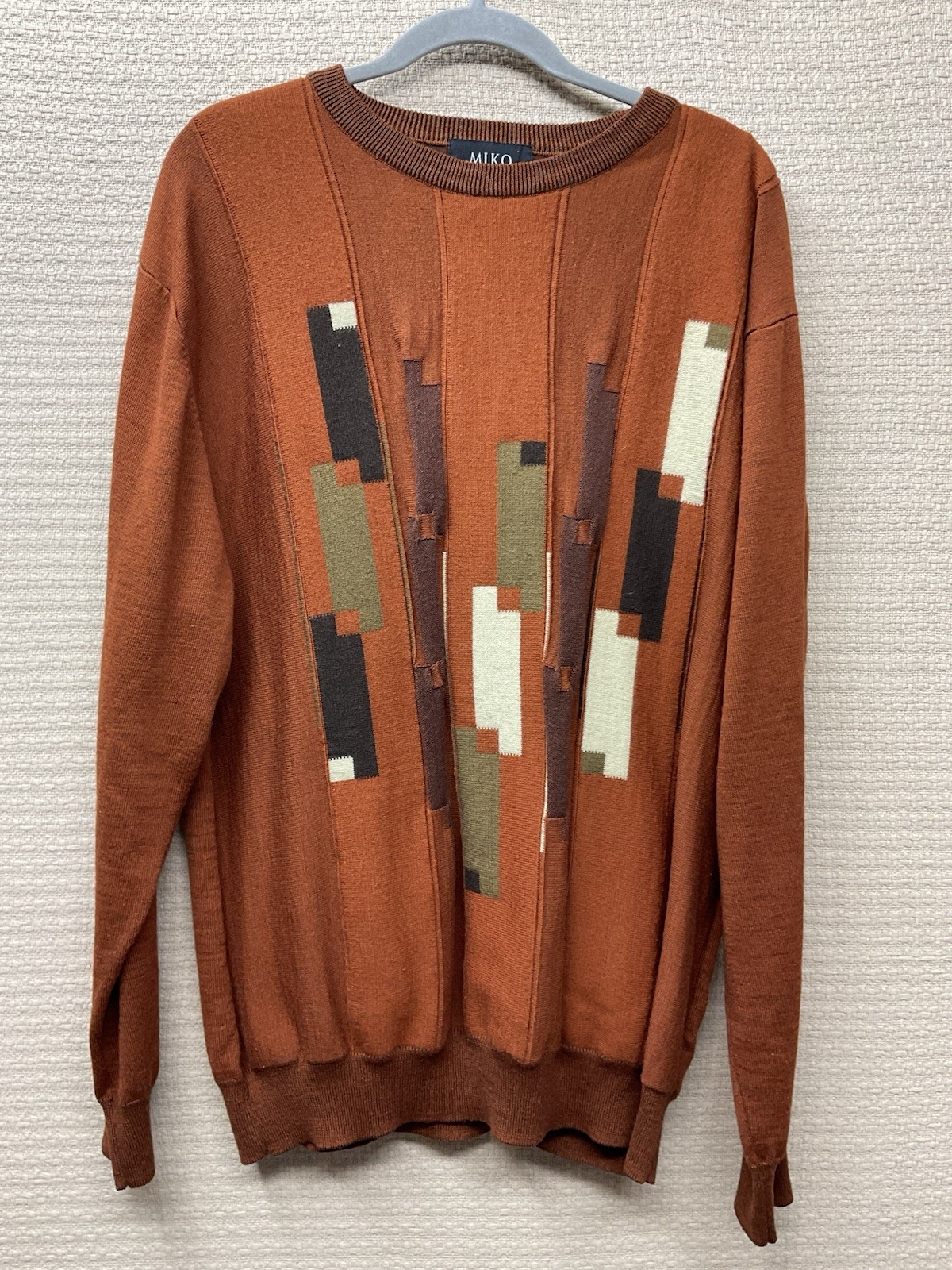 Miko Sweater Men s Size XL Orange Geometric Knit Wool Blend Long Sleeve Casual