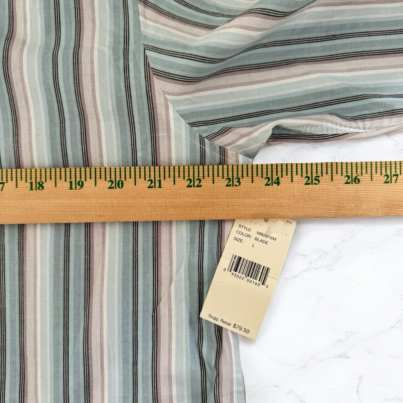 Perry Ellis Mens Striped Long Sleeve Career Button-Up Shirt Large Blue Mauve NWT