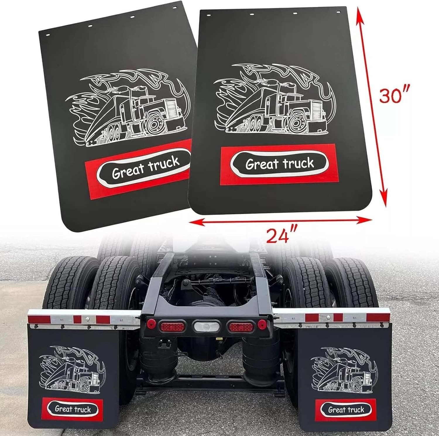 Black Mud Flaps for Semi Trucks Tractor Trailer Great-Truck Pattern,Heavy Dut...