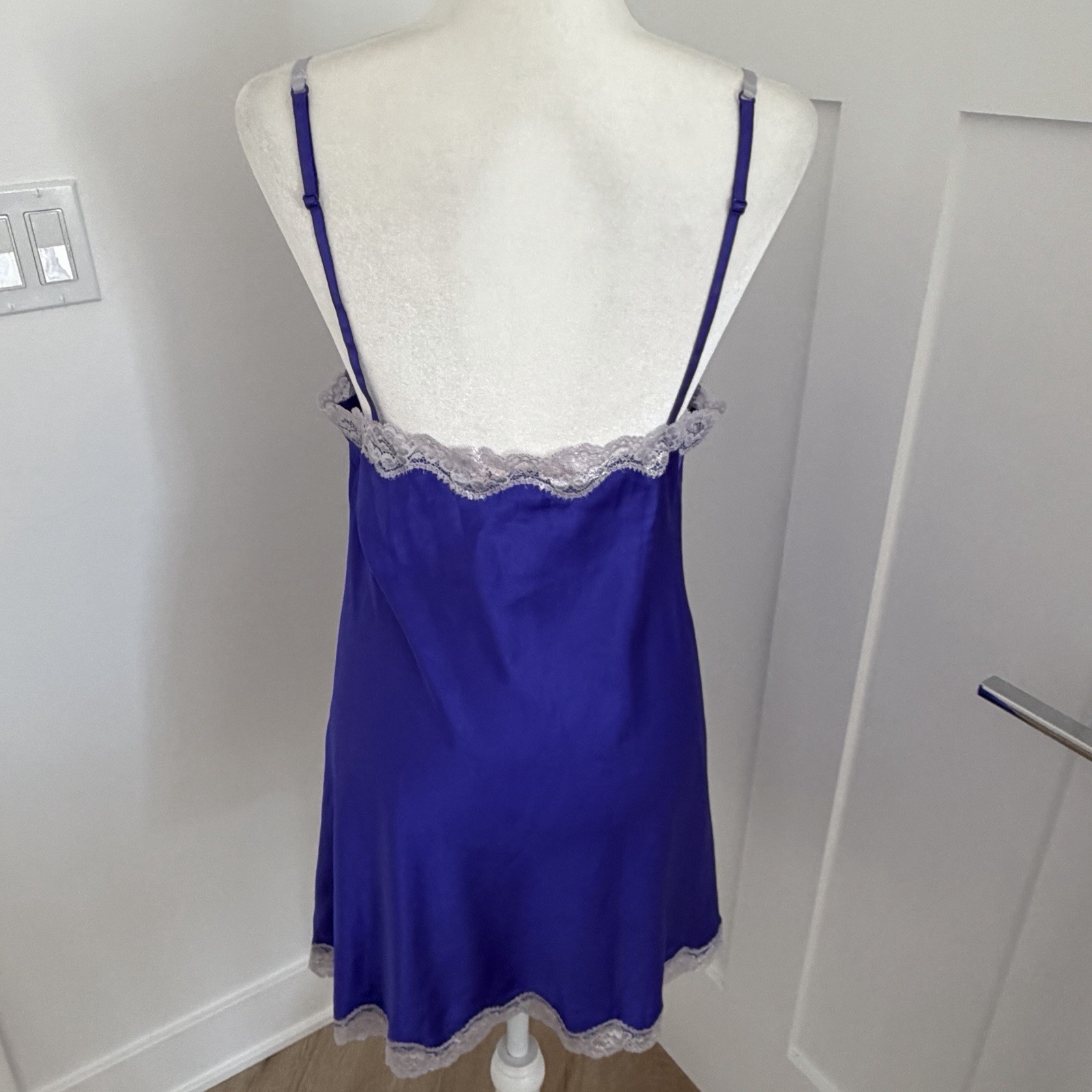 Victorias Secret Silky Purple Satin Lace Lined Chemise Slip Lingerie LARGE E11
